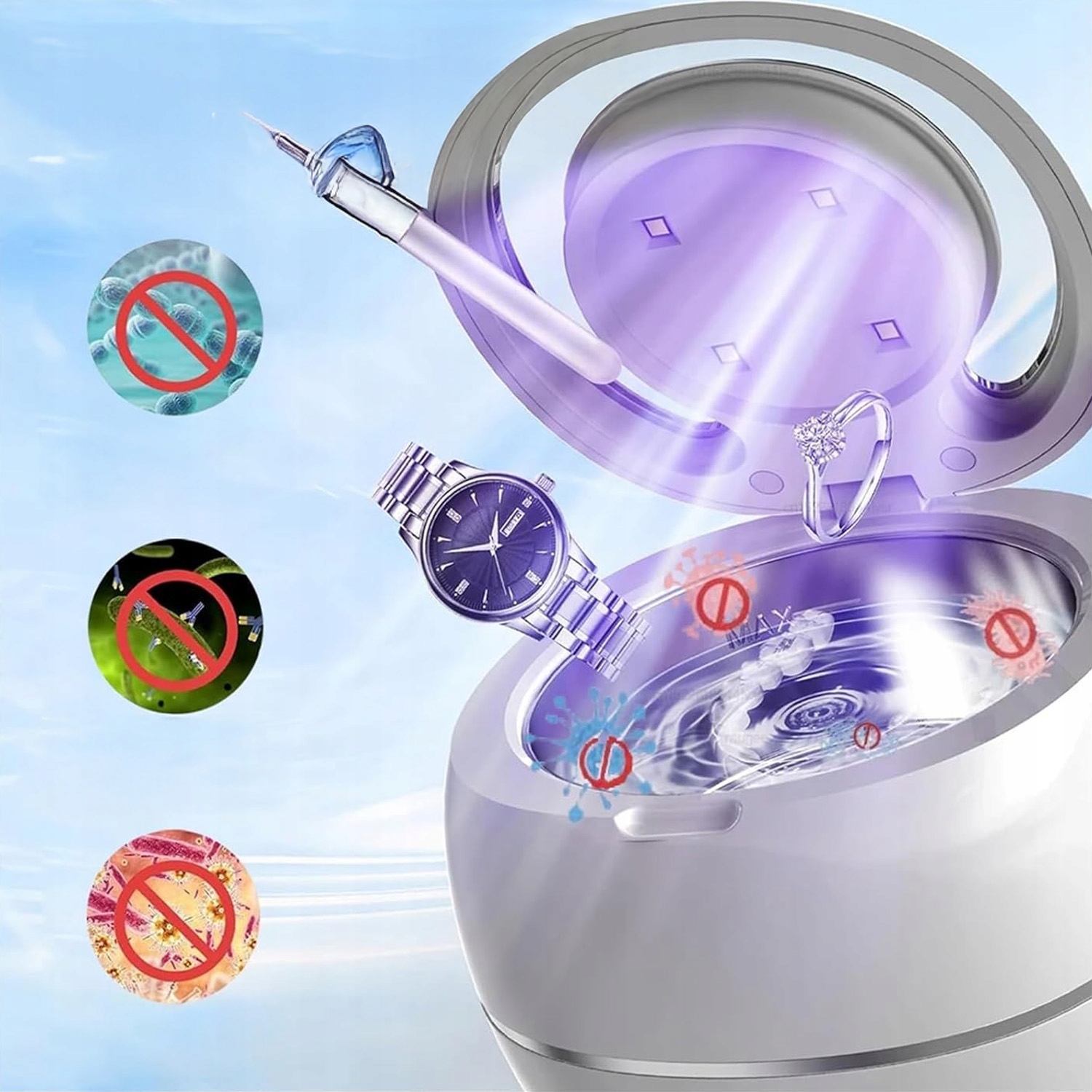 🎁🎁УФ-лампа и ультразвук 2 в 1: Попрощайтесь с неэффективными методами чистки, которые лишают ваши украшения блеска. Наш ультразвуковой очиститель имеет уникальную конструкцию с функцией ультразвуковой очистки и ультрафиолетовой светодиодной лампой, которая эффективно удаляет грязь, пыль и жир. Кроме того, УФ-лампа очищает ваши вещи, поэтому вы можете спокойно ими пользоваться.