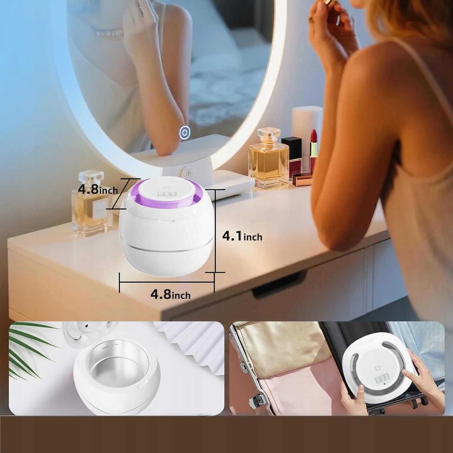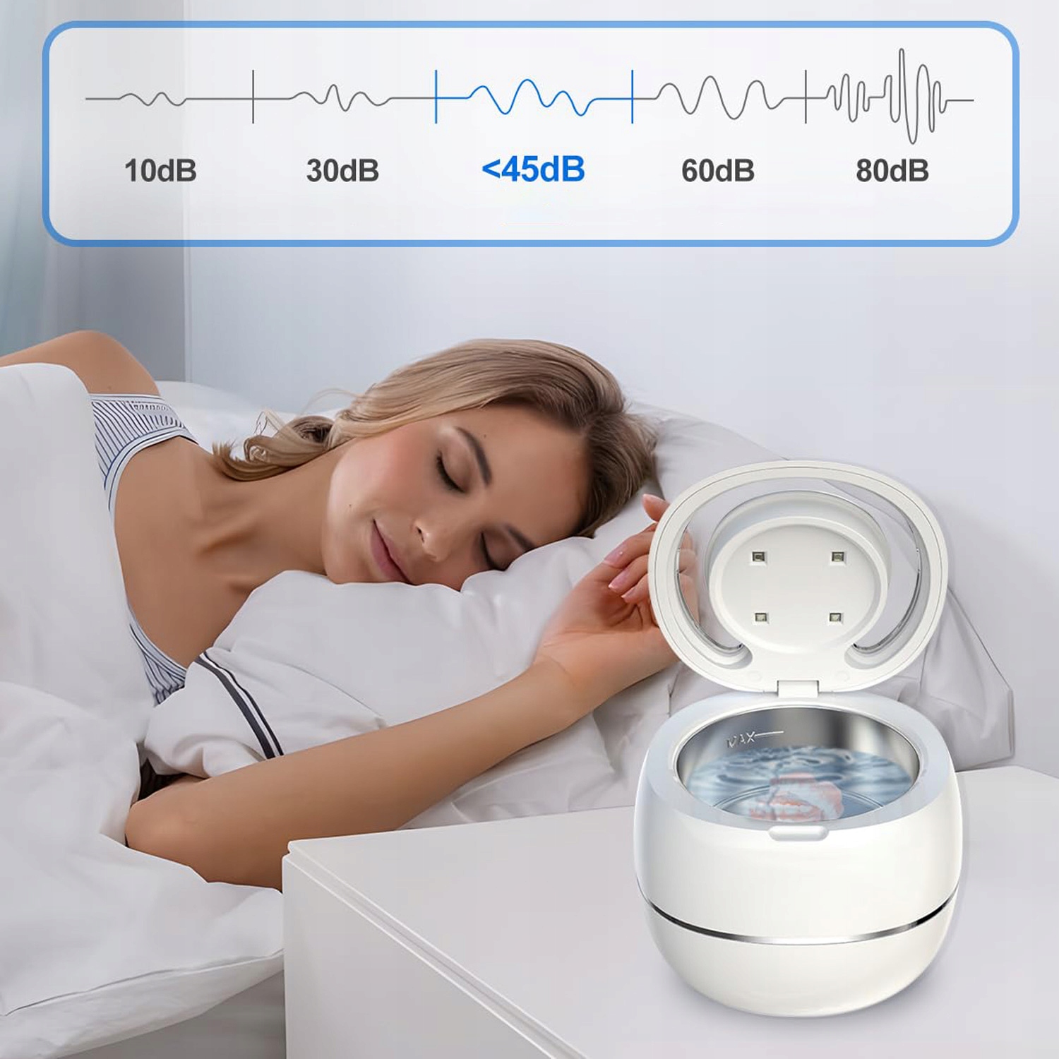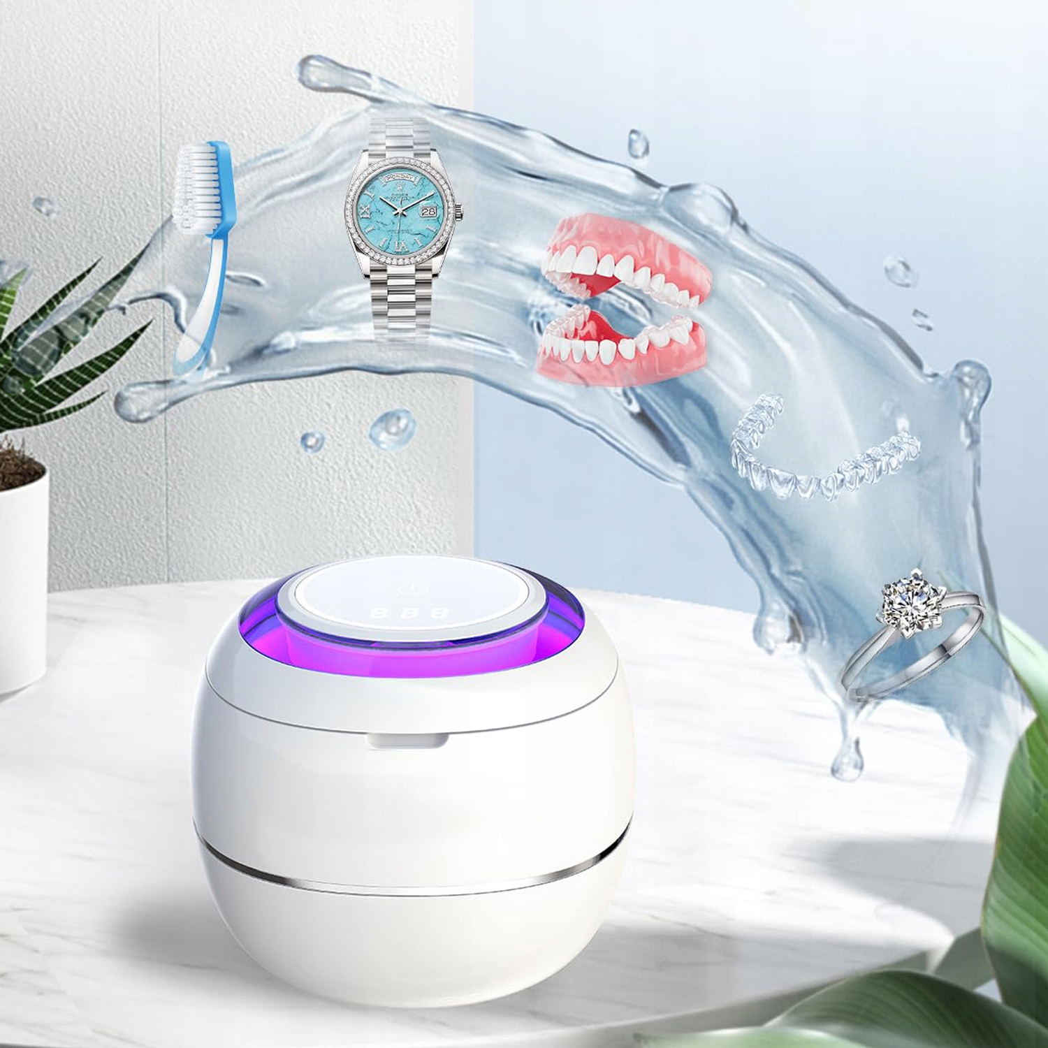 Наш ультразвуковой очиститель спроектирован с учетом минимального пространства и идеально подходит для использования дома и в поездках. В резервуаре из нержавеющей стали объемом 180 мл достаточно места для различных мелких предметов, что идеально подходит для людей с зубными протезами или брекетами, пожилых людей с зубными протезами и людей, носящих украшения.