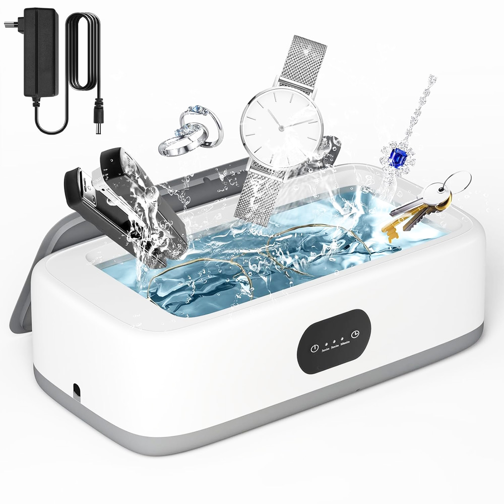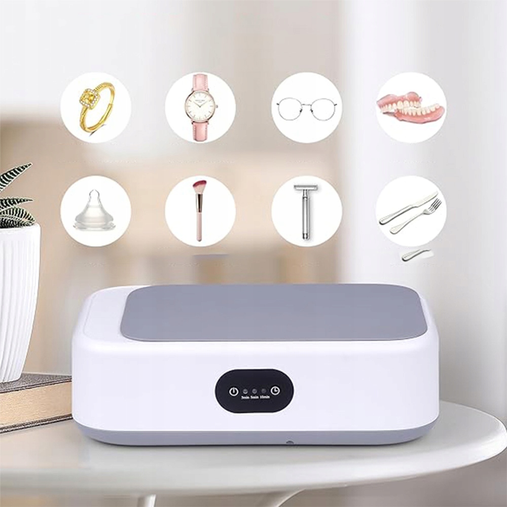 Безопасное в использовании, корпус, изготовленный из экологически чистого материала АБС, прочное, максимальное ультразвуковое время работы - 10 протокол. Подождите перед использованием, пока он не остынет. , кольца, серьги, стаканы, водонепроницаемые часы, бритвы, зубные щетки, искусственные зубы, головка ручки. Подходит для использования дома или взять с собой в путешествие