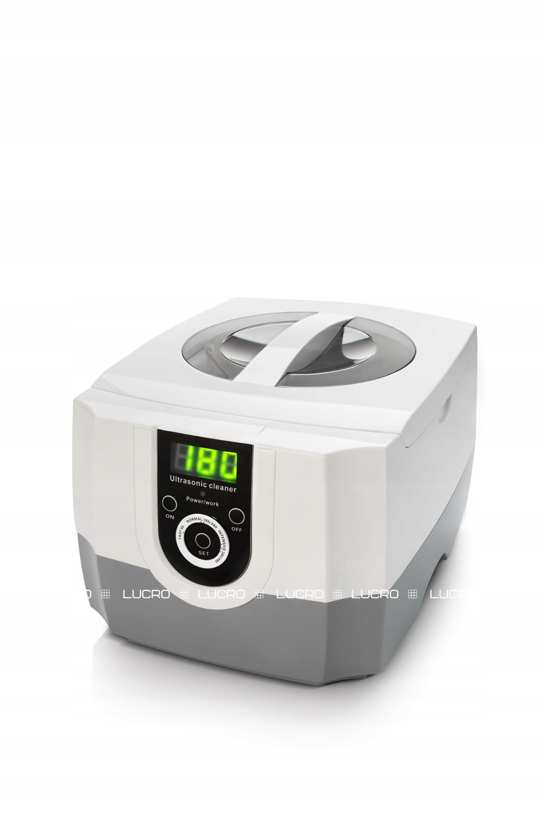 Откройте крышку и наполните резервуар из нержавеющей стали водой. Работа без воды может привести к повреждению устройства! Поместите предмет в воду. Вода должна покрывать весь очищаемый предмет, но не должна превышать уровень «MAX» и быть ниже уровня «MIN». Вставьте вилку в розетку. Нажмите кнопку SET, чтобы выбрать рабочий цикл. После подключения устройства к источнику питания автоматически отображается цифра «180». Это наиболее часто используемый рабочий цикл. Каждый раз, когда вы нажимаете «SET», доступны следующие дополнительные рабочие циклы: нажмите «ON», чтобы начать очистку, загорится красный индикатор. Во время чистки вы можете услышать жужжание, что означает, что устройство работает. Когда устройство достигнет времени «000», оно автоматически остановится, и красный свет погаснет. Если необходима дальнейшая очистка, просто повторите вышеуказанные шаги. Во время чистки, чтобы остановить работу устройства, достаточно нажать кнопку «ВЫКЛ». При повторном нажатии кнопки «ВКЛ» устройство возобновит выполнение оставшейся программы для продолжения очистки. Причем, чтобы возобновить рабочий цикл, можно нажать кнопку «SET». После очистки отключите устройство от электросети и откройте крышку, затем извлеките очищаемый предмет. Наконец, вылейте воду из резервуара из нержавеющей стали и вытрите его насухо. ТРИ СПОСОБА УБОРКИ ГЕНЕРАЛЬНАЯ УБОРКА Для генеральной уборки используйте только водопроводную воду. Вода должна покрывать весь очищаемый предмет, но не должна превышать уровень «MAX» и быть ниже уровня «MIN». УЛУЧШЕННАЯ ОЧИСТКА Добавьте в воду около 5–10 мл моющего средства, если очищаемая вещь сильно загрязнена или давно не чистилась. Это может ускорить расщепление грязи и повысить эффективность очистки примерно на 30%. ЧАСТИЧНАЯ ОЧИСТКА Для крупных предметов выполняется частичная очистка, как показано на рисунке. Любые незакрепленные предметы могут выпасть. Не кладите в резервуар предметы, которые легко обесцвечиваются, например ткань, кожу или изделия из дерева. Не кладите в резервуар мобильный телефон или часы, которые не являются водонепроницаемыми. Не кладите в резервуар оправы для очков или предметы искусства. из черепахового панциря. МОЩНОСТЬ 60 Вт (100 В переменного тока, 50/60 Гц) 60 Вт (100–120 В переменного тока, 60 Гц) 70 Вт (220–240 В переменного тока, 50 Гц) ЧАСТОТА 42 кГц РАЗМ. 230 X 180 135x165x60 мм