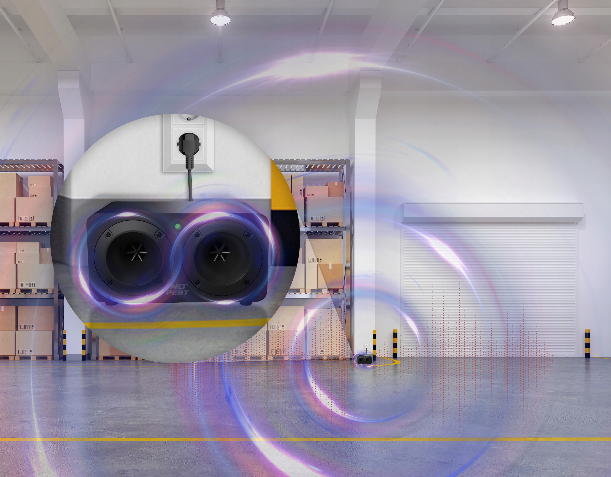 Устройство излучает звуковые волны с акустическим давлением 120 дБ , что вызывает сильный дискомфорт в летучих мышах. Достаточно подключить их к источнику питания, чтобы немедленно запустить процесс сдерживания - прямо, комфортно, без контакта с животными .