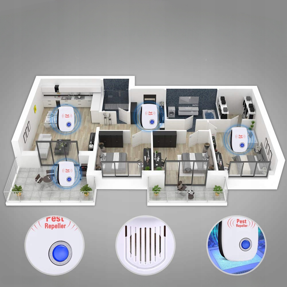 🏠 Большая зона действия: каждый ультразвуковой отпугиватель может покрывать площадь до 60 квадратных метров, рекомендуется размещать по одному устройству в каждой комнате, чтобы каждый Угол вашего дома покрыт и защищен.