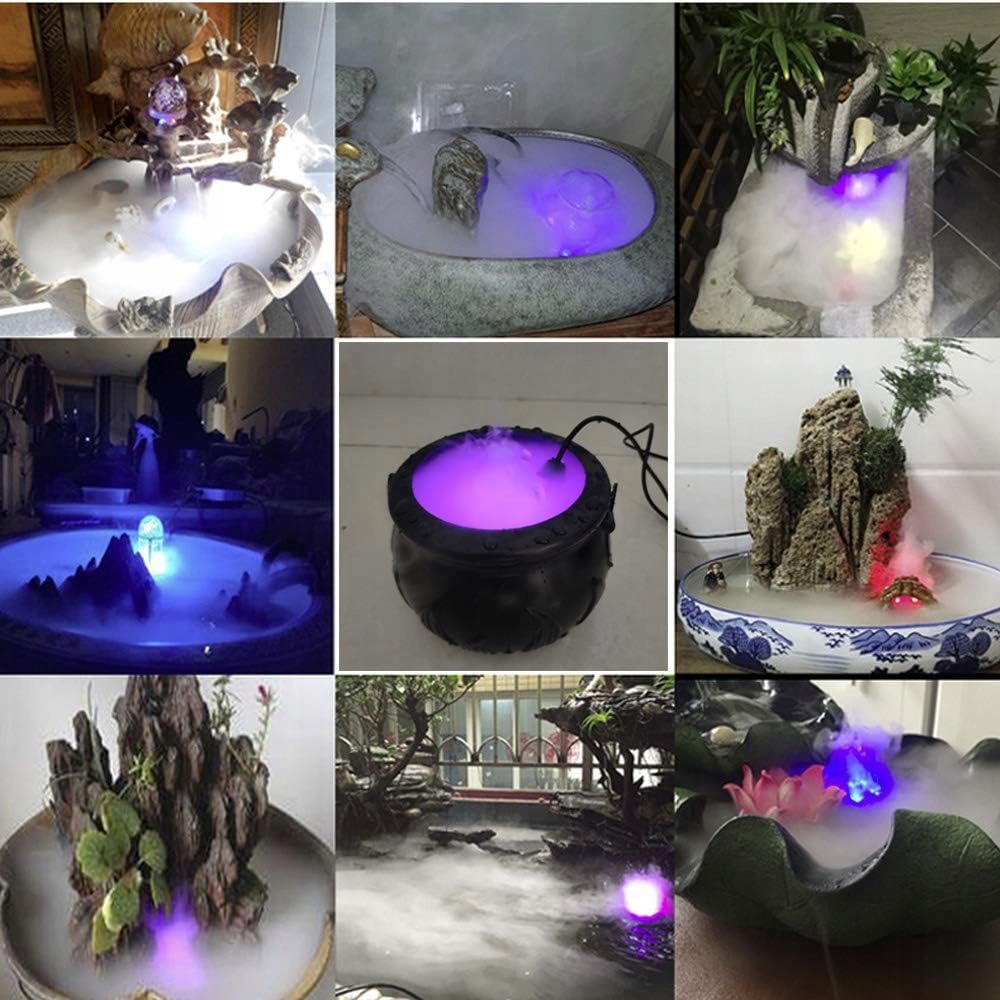💕💕💕【 Легко и безопасно использовать】 подключить и использовать фонтаны внутри и снаружи, водные игры и офисы. Он также идеально подходит для использования в прудах, каменных садах и аквариумах. Поместите его в воду, и туман появится.