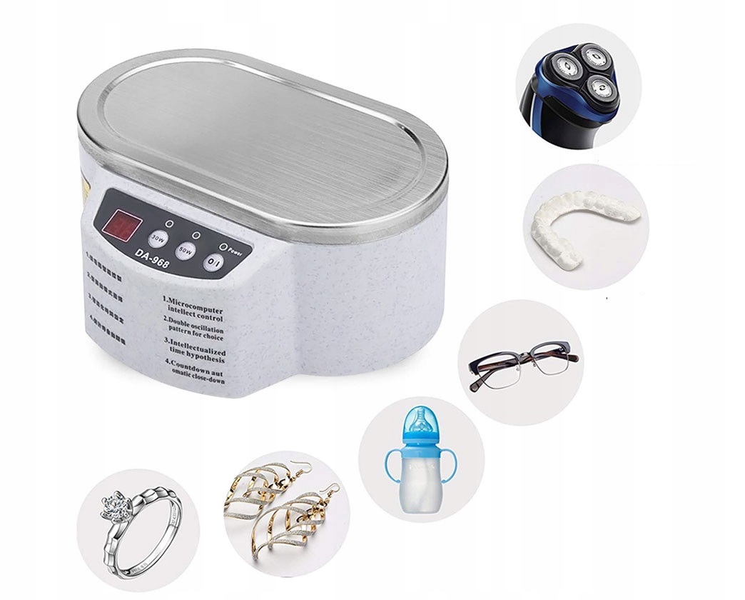 А так можно тщательно отмыть ювелирные изделия, столовые приборы, часы – конечно водонепроницаемые, возможно, части бритвенных головок, зубных протезов, часы, украшения, объективы фотоаппаратов, печатные платы, электронные компоненты, хирургические инструменты.