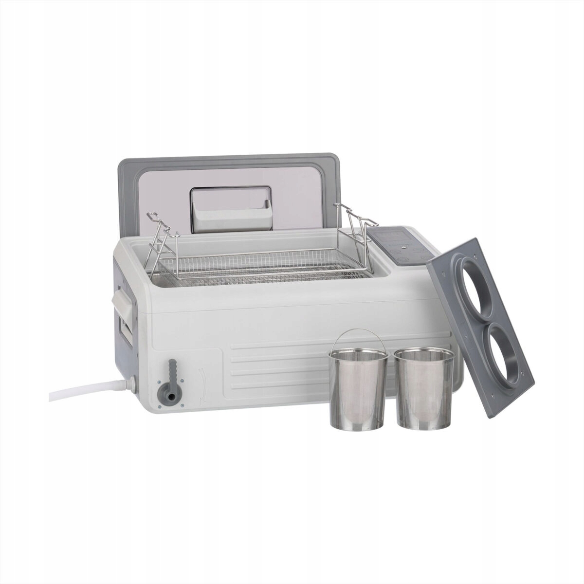Эффективность и безопасность: оснащен двумя наборами ультразвуковых преобразователей (60 Вт, диаметром 38 мм), обеспечивающими равномерную активность по всему объему резервуара. Кроме того, прочный сливной клапан и прочный пластиковый корпус повышают долговечность и безопасность устройства.