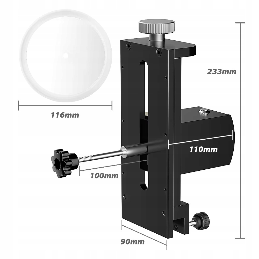 Удлинитель оснащен прецизионным синхронным двигателем, который обеспечивает постоянное и равномерное вращение со скоростью 4 оборота в минуту. Его прочный корпус, выполненный из анодированного алюминия элегантного черного цвета, гарантирует долговечность и современный внешний вид.