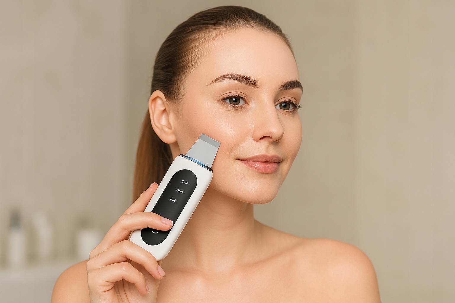 Ультразвуковое устройство для очистки лица превращает воду в туман путем вибрации головы, который проникает в поры и очищает их.