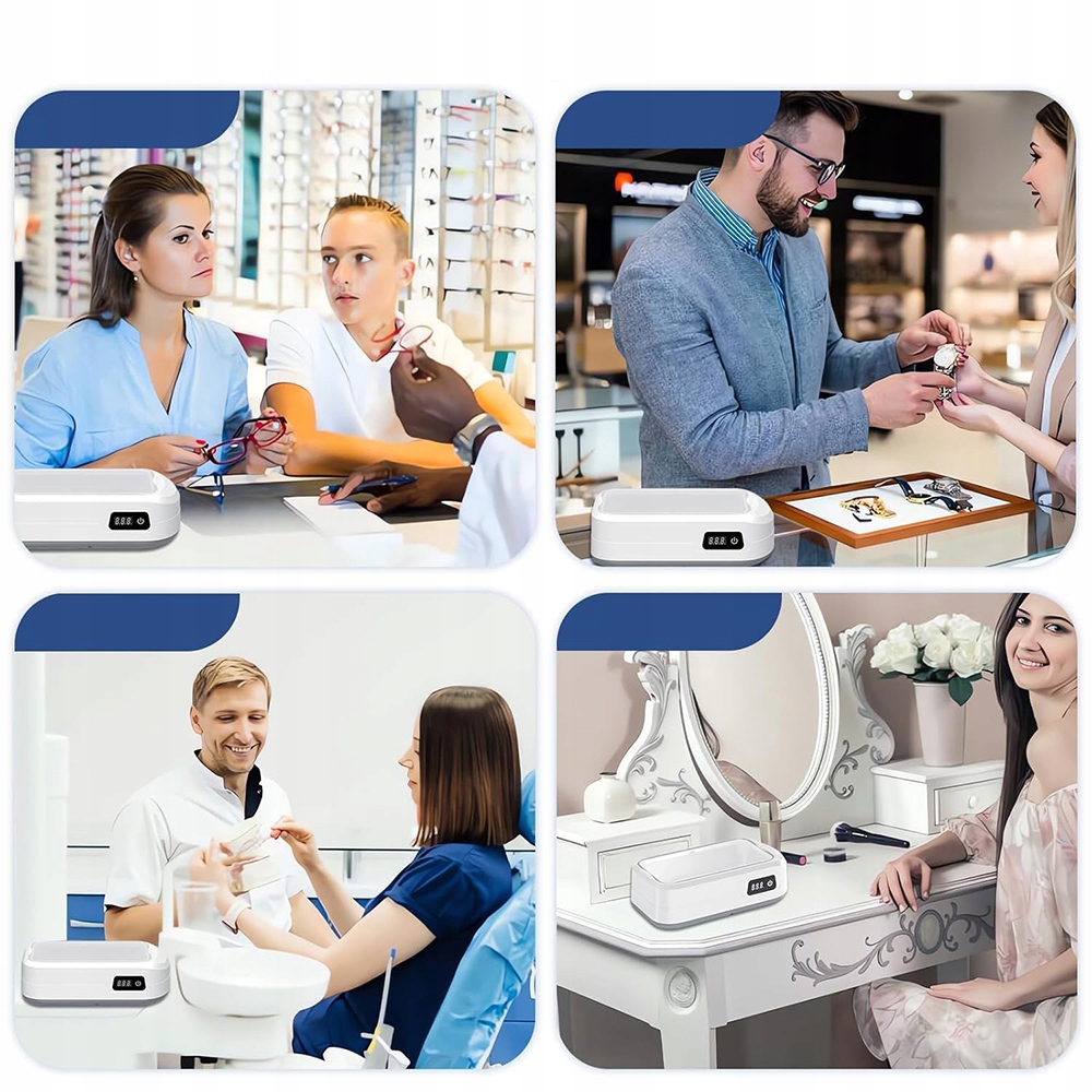- Ультразвуковая чистка очков. Просто наполните ультразвуковой очиститель чистой водой, погрузите в него очки, часы, зубные протезы, украшения и т. д. и добавьте необходимое количество чистящего средства. Затем выберите подходящее время очистки для предметов, которые вы хотите очистить. Затем протрите очищенную вещь чистой хлопчатобумажной тканью, чтобы вернуть ей первозданный вид.