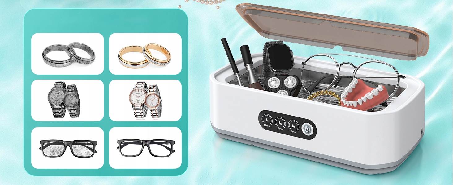 🕒【 широкое использование】: ультразвуковое чистящее средство для очков имеет 3 скорости чистки. Это 3 минуты, 6 минут и 12 минут. Вы можете выбрать правильную настройку в зависимости от степени грязи объекта. Идеально подходит для очистки очков, украшений, косметических кистей, стоматологических протезов, машин для бритья и т. Д. Просто налейте воду в устройство. Затем введите в него чистящие элементы. Наконец, одного щелчка достаточно, чтобы выбрать желаемую передачу и дождаться чистки конец