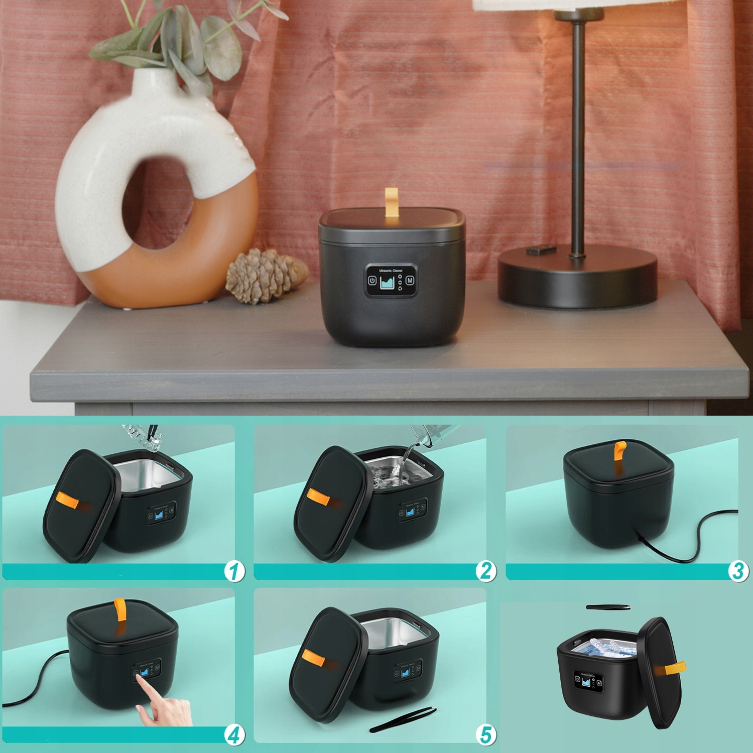 - Ультразвуковой очиститель имеет множество практических применений и является идеальным подарком для пожилых людей с зубными протезами, друзей с брекетами, любителей спорта с каппами или тех, кто носит украшения.