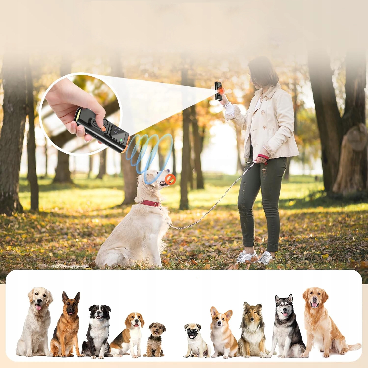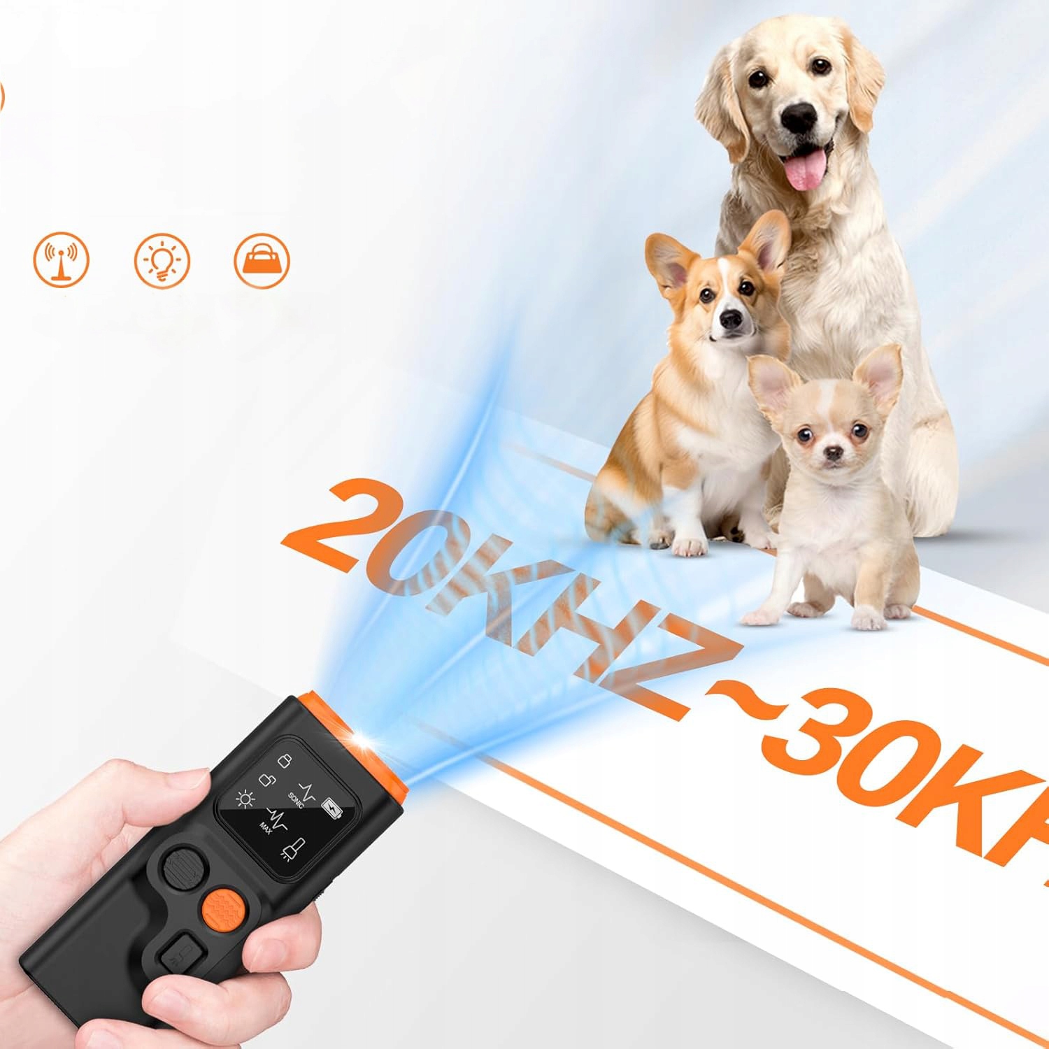 - 🐾-Я могу быть использован в качестве устройства для тренировок собак, чтобы научить их прекратить лаять, укусить, прыгать, ударить, ножать, а также можно использовать в качестве сдерживающего устройства, чтобы помешать агрессивным собакам приближаться к вашей собаке. От 20 до 30 кГц. Звук не повлияет на людей, но он привлечет внимание собак и повлияет на них.