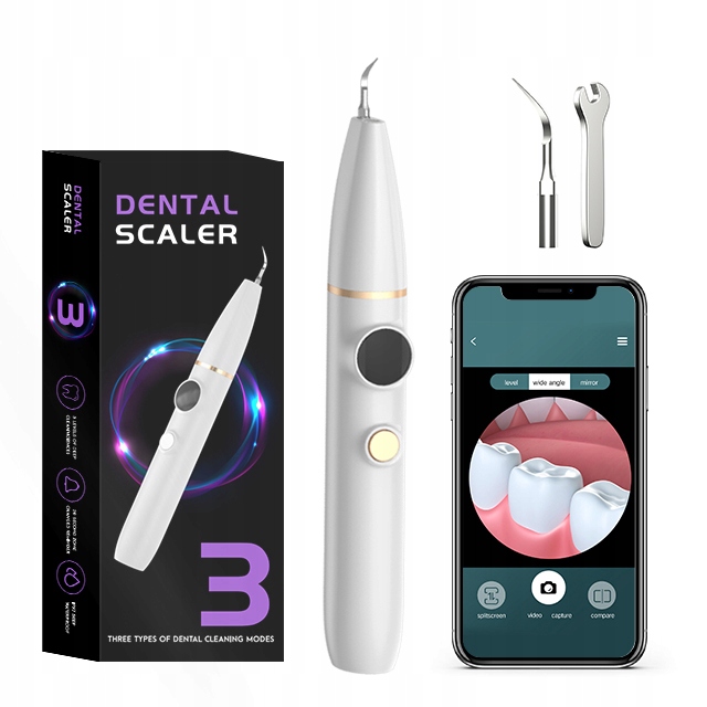 Благодаря живому просмотру на вашем телефоне вы каждый раз будете ударяться о камень и избавите себя от проблем с эмалью. На экране вы можете проверить как изображение с камеры, так и уровень заряда устройства. Благодаря камере вам не придется беспокоиться о повреждении эмали. Кроме того, скейлер перестанет работать, как только вы прикоснетесь к деснам.