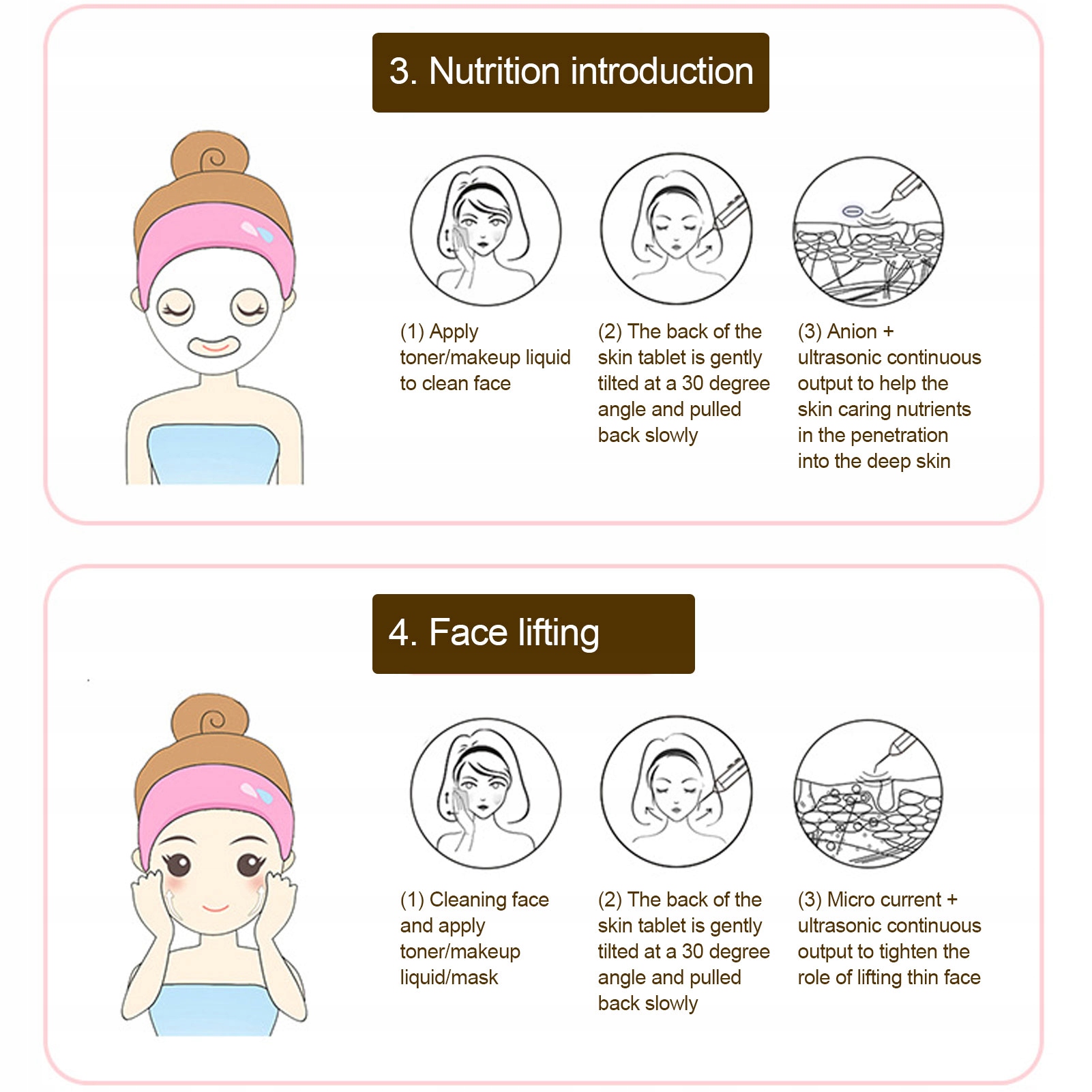 4. Введение питательных веществ, омоложение, использование функции импорта для расщепления питательных веществ на мелкие частицы в нижней части кожи и фиксации.