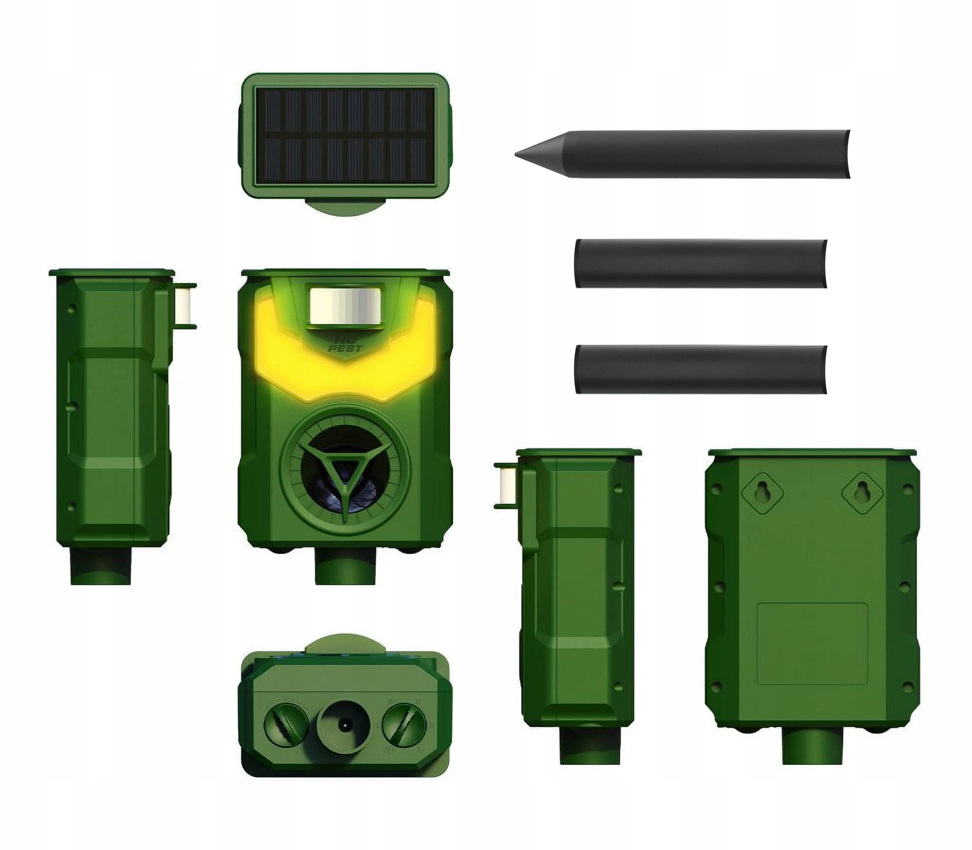 Это эффективное средство, отпугивающее животных несколькими способами. Он издает неприятные и раздражающие ультразвуковые звуки, а также пугает животных, имитируя пламя, которого они боятся. Репеллент действует на кабанов, косуль, оленей, зайцев, куниц, лисиц и даже кошек и собак. Все эти животные больше не будут вам угрожать!