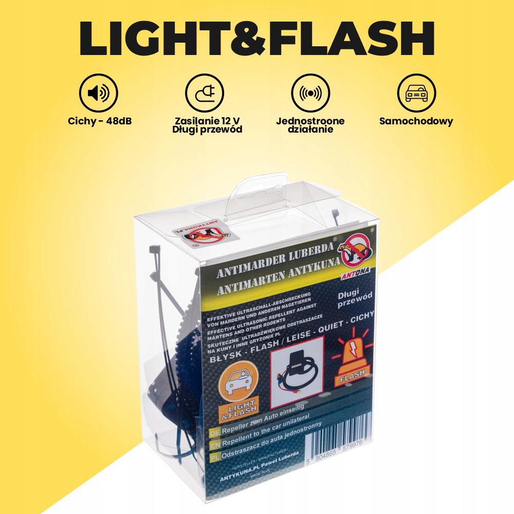 Основной особенностью модели LIGHT&FLASH является то, что она бесшумна – практически не слышна человеческому уху. Кроме того, устройство работает непрерывно, независимо от того, стоит ли ваш автомобиль или движется, обеспечивая непрерывную защиту от вредителей. Берегите свой автомобиль и защитите его от нежелательных гостей.