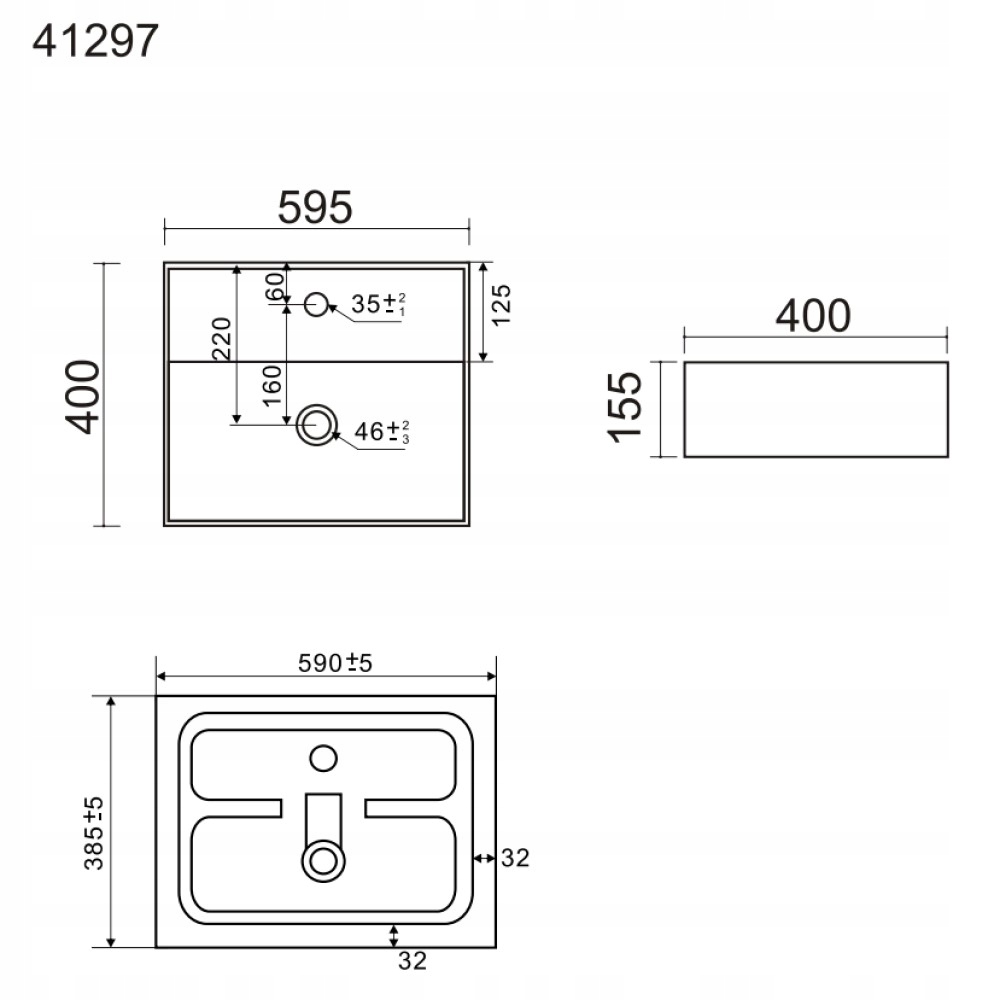 УМИВАЛЬНИК 59,5X40 СМ ПРЯМОКУТНИЙ ВЕРХНЕВИЙ TORINO
