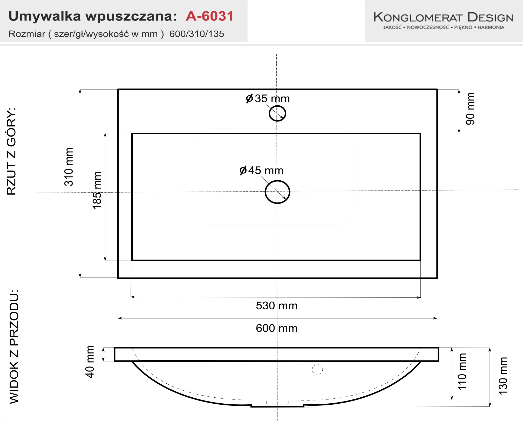 При производстве использовался высококачественный конгломерат и смолы, поэтому, несмотря на небольшой вес, умывальник очень прочный и идеально подходит для повседневного использования. Умывальники предназначены для установки на столешницу или шкаф в заранее подготовленное отверстие. Умывальник оснащен глянцевым хромированным переливом, расположенным на задней стенке чаши. Отверстие под смеситель диаметром 3,5 см и сифон 4,5 см, стандартизированные для соответствия 99% сифонов и кранов, доступных на польском рынке.