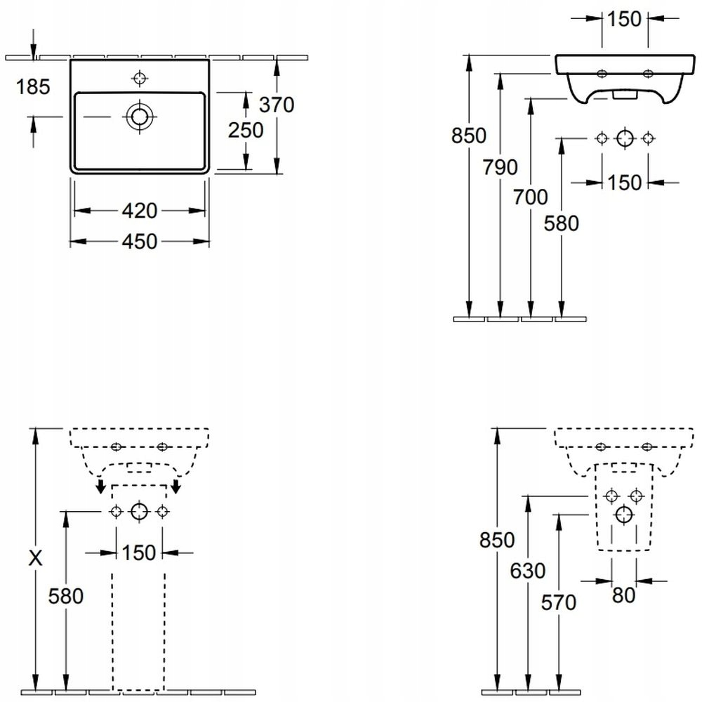 НАСТЕННАЯ РАКОВИНА CLASSIC 45X37 CM БЕЛАЯ VILLEROY BOCH AVENTO