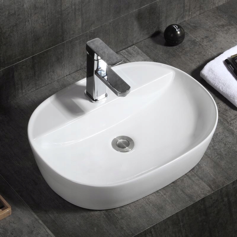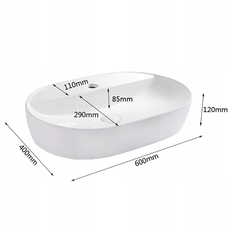 КЕРАМИЧЕСКАЯ НАСТОЛЬНАЯ РАКОВИНА, БЕЛАЯ, НАСТАВНАЯ НА СТОЛЕШНУЮ, ГЛЯНЦЕВАЯ, ОВАЛЬНАЯ, 60x40 СМ