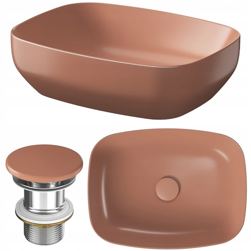 Настольная керамическая раковина #Larga, прямоугольная 50х38 см, кирпично-красный матовый + пробка