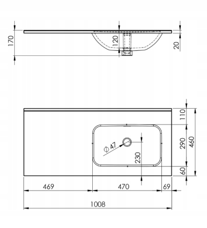 МЕБЕЛЬНАЯ РАКОВИНА 100 СМ С ВЫДВИНУТОЙ ВЕРХНЕЙ СЛЕВА ELITE