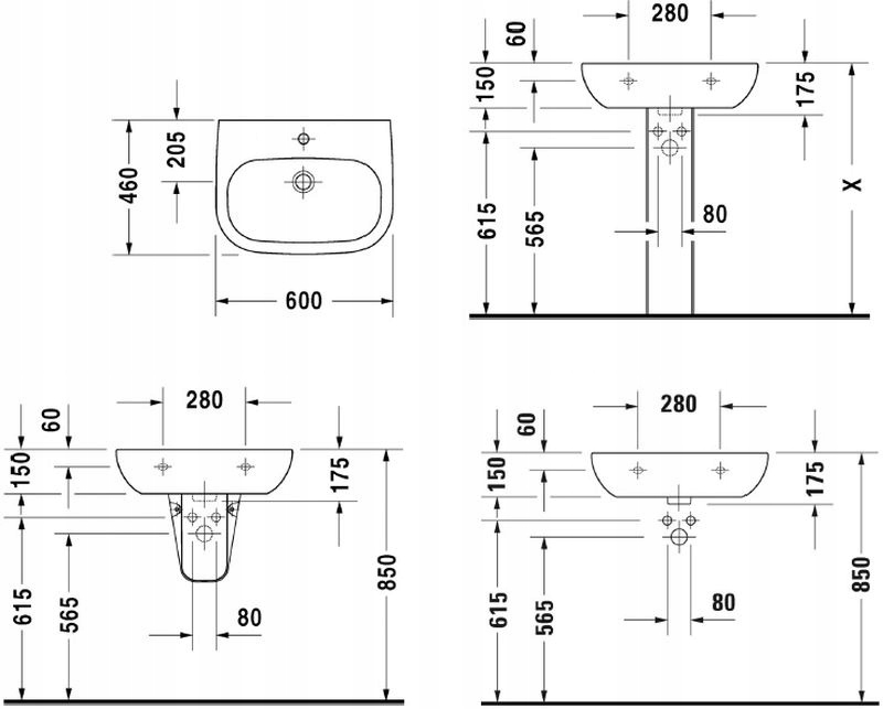 НАСТЕННАЯ РАКОВИНА 60X46, ПОЛУКРУГЛАЯ, DURAVIT D-КОД