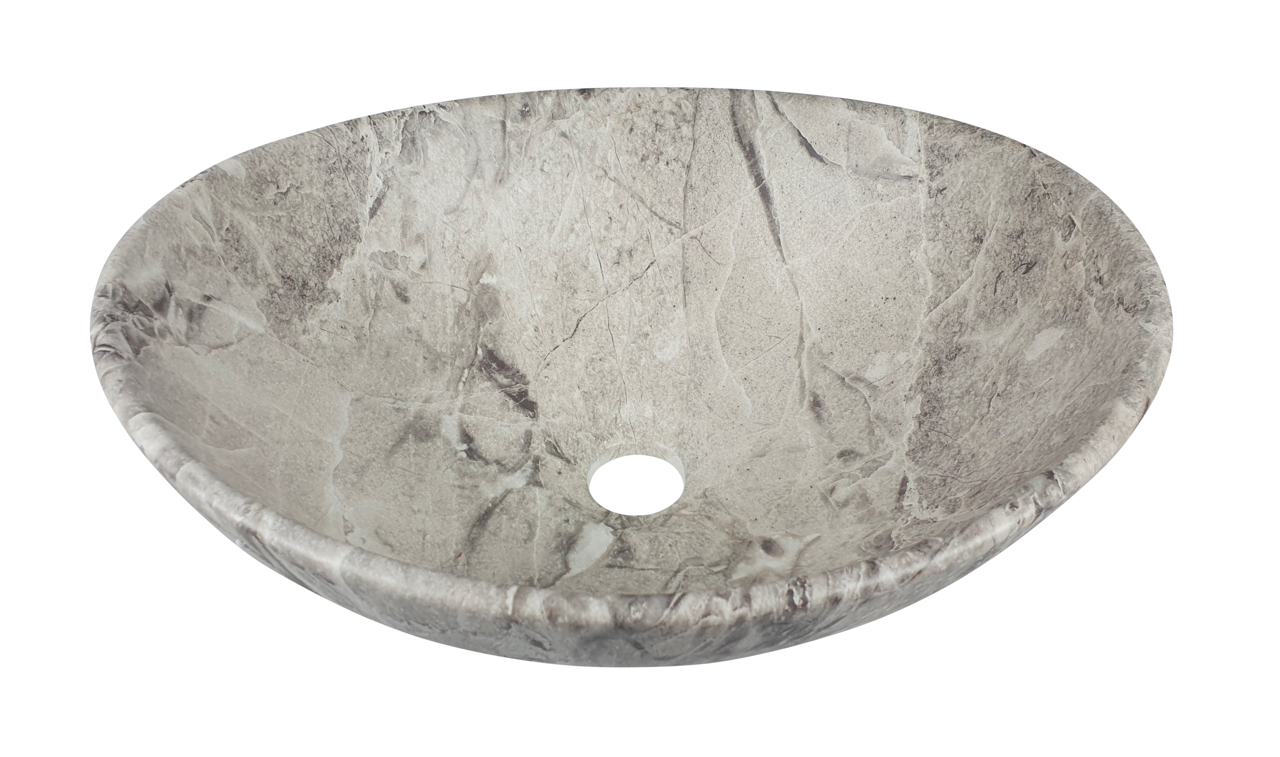 УМИВАЛЬНИК НАСТІЛЬНИЙ, СІРИЙ КАМІНЬ, ОВАЛЬНИЙ, ВСТАНОВЛЕНИЙ НА СТІЛЬНИЦЮ 40x33x14,5 MATTE