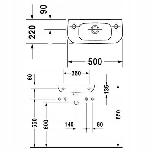 Изделие, представленное на фото, представляет собой небольшой подвесной умывальник, который прекрасно впишется в интерьер небольшой ванной комнаты. Его размеры составляют 50 сантиметров в длину и всего 22 сантиметра в глубину. Он белого цвета, имеет перфорированное отверстие под смеситель с правой стороны и отверстие для перелива. Керамика Duravit производится с использованием новейших технологий.