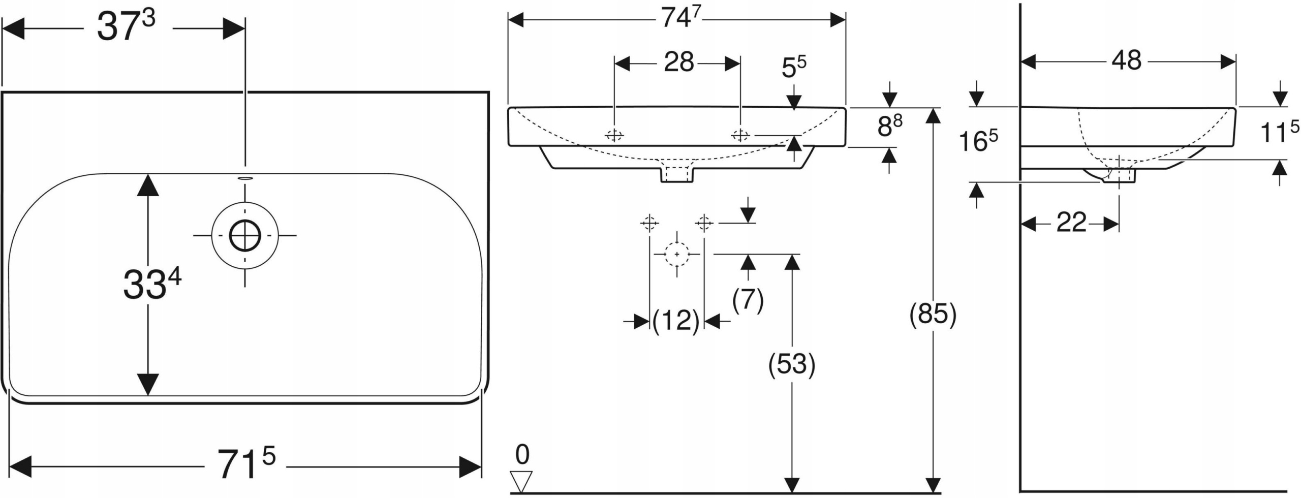 УМИВАЛЬНИК ПРЯМОКУТНИЙ GEBERIT 75X48 СМ