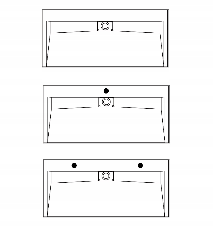 В умывальниках длиной 60-120 см можно просверлить любое количество отверстий под смесители, в любой конфигурации.