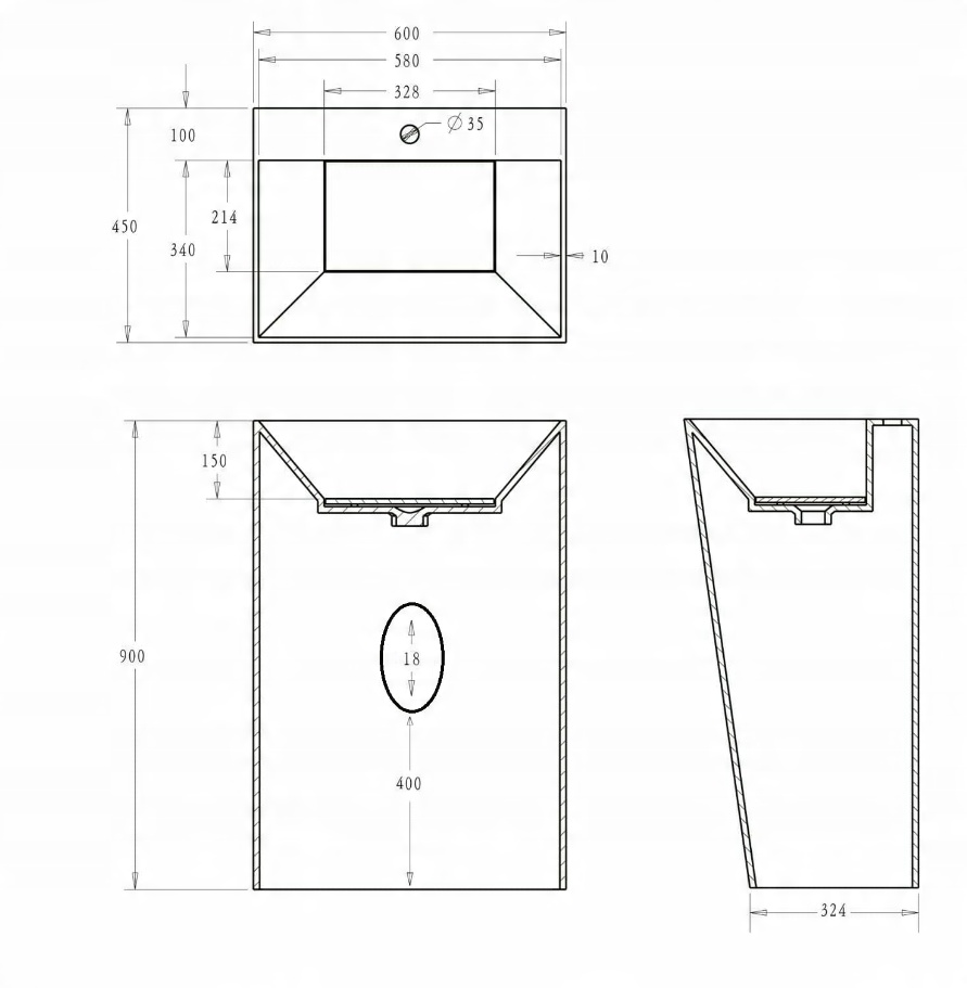 УМИВАЛЬНИК VELDMAN МОНОЛІТНИЙ Окремо стоячий MAX 60/1