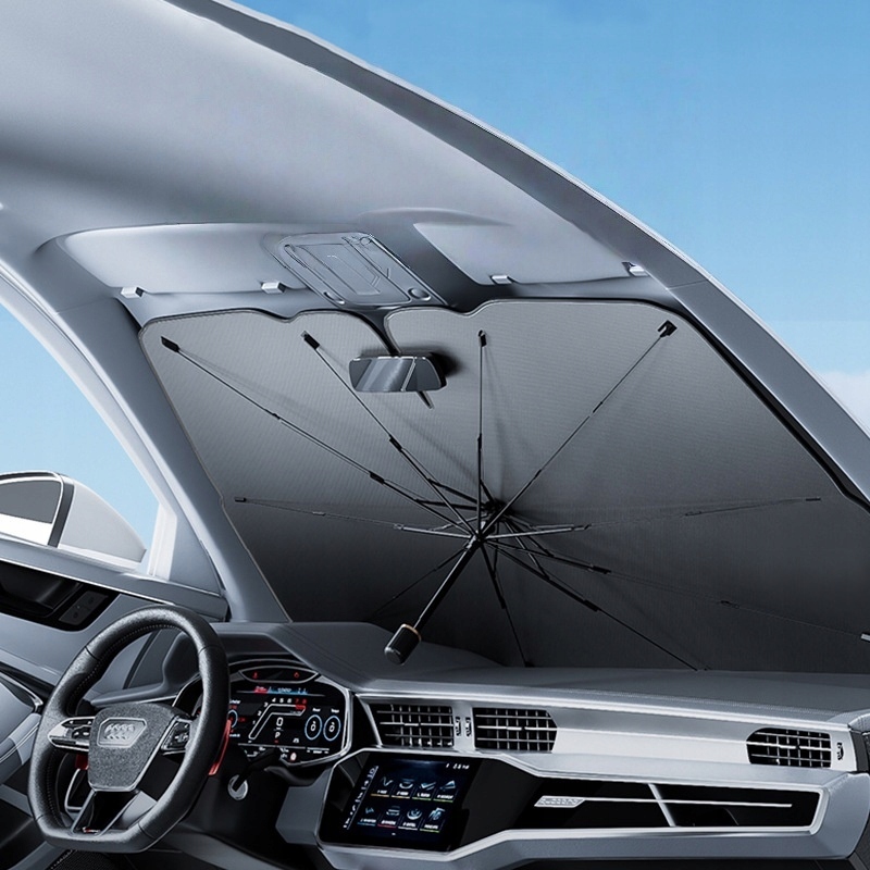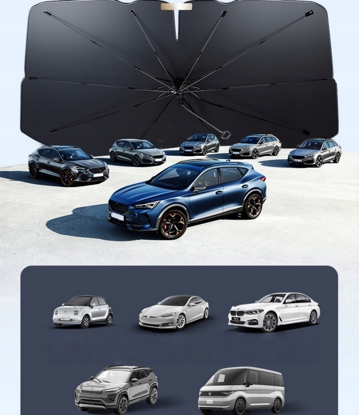 Держите приятную температуру внутри вашего автомобиля и защитите интерьер от вредного ультрафиолетового излучения ! Солнцезащитный крем в форме зонтика является инновационным и удобным решением, которое эффективно уменьшает нагрев внутренней части автомобиля и защищает приборную панель и обивку перед выцветанием.