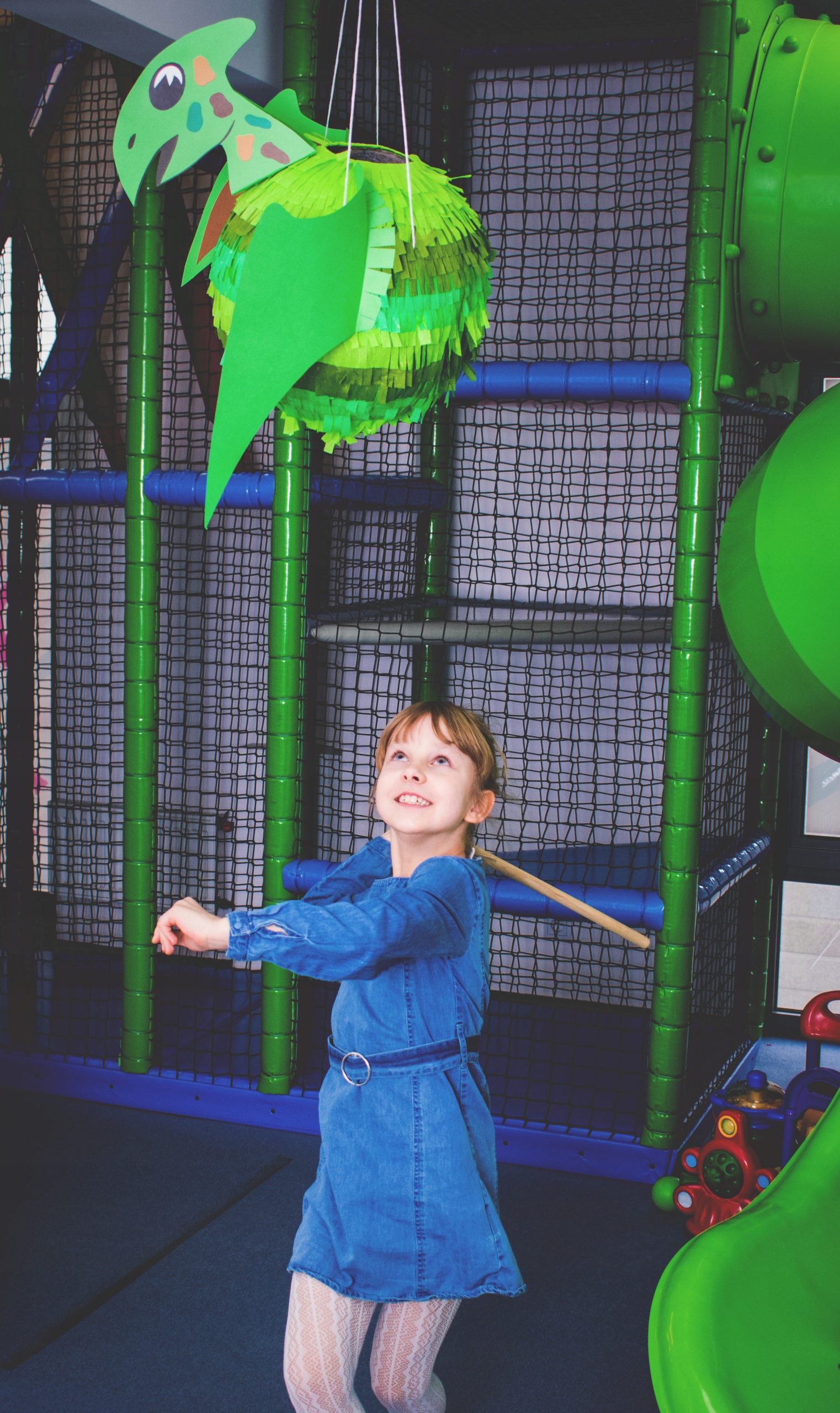 2. Подвесьте пиньяту на веревке, прикрепленной к пиньяте, так, чтобы тот, кто ее сломает, коснулся палкой центра пиньяты