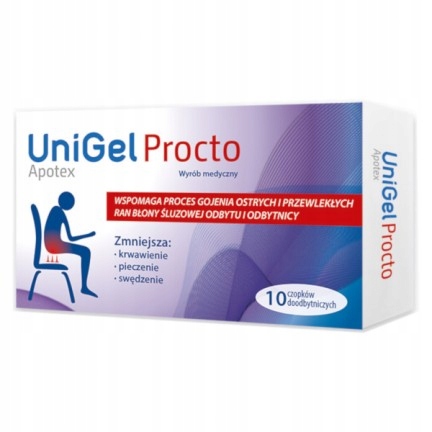 УниГель Апотекс Прокто – медицинское изделие, которое способствует процессу заживления как острых и хронические раны слизистой оболочки заднего прохода и прямой кишки: