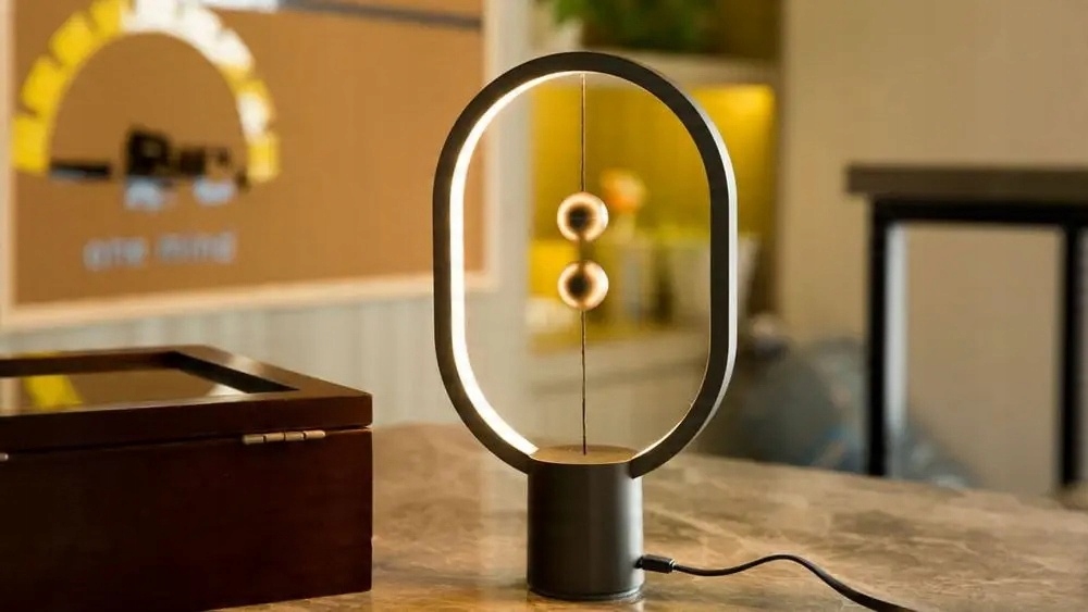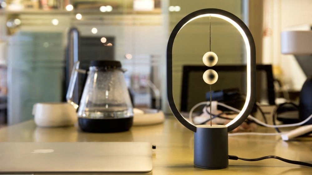 "Heng Balance" - это серия настольных ламп с неожиданностью: где большинство ламп есть стандартный выключатель, лампа баланса лампы управляется двумя шариками. Когда вы поднимете нижний, это будет привлечено висеть и оставаться в воздухе, включая свет.