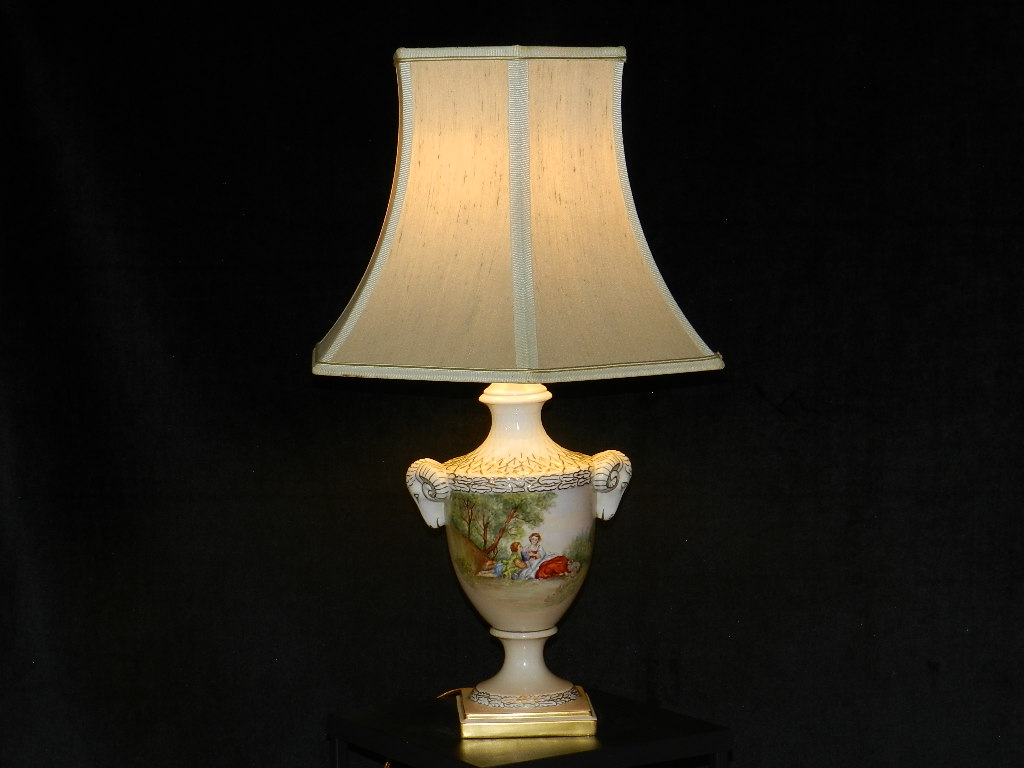 УНІКАЛЬНА ПОРЦЕЛЯНОВА ЛАМПА З АБАСУРОМ, РОЗПИСАНА ВРУЧНОЮ ЗАГАЛЬНА СЦЕНА ALKA