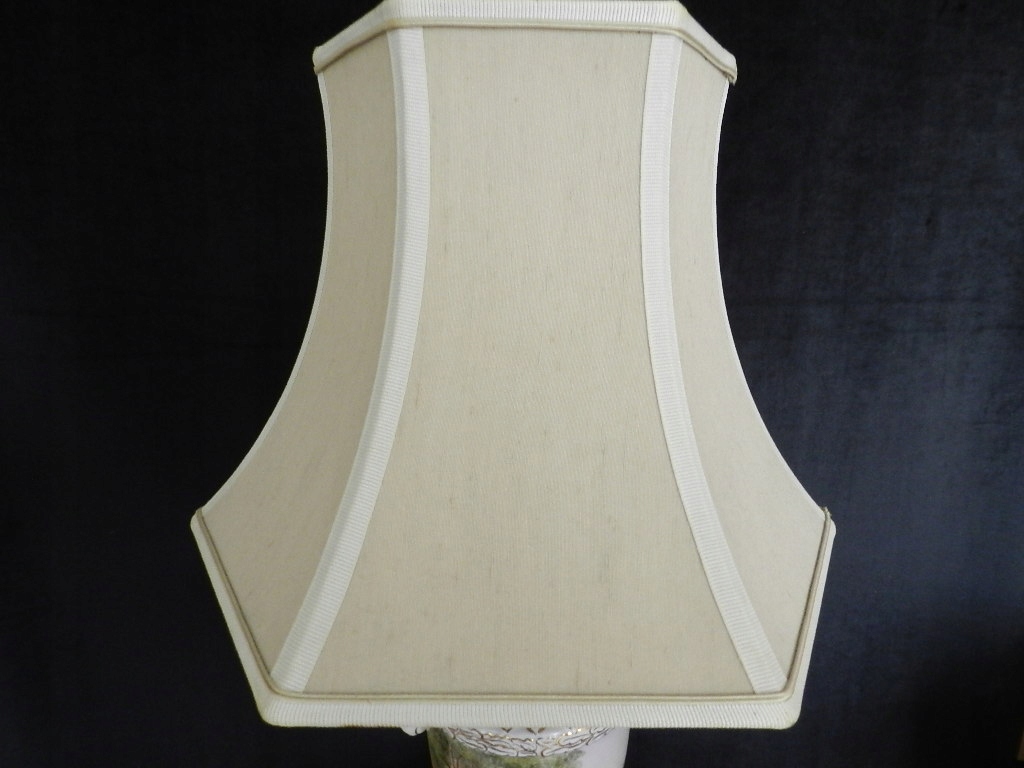 Размеры: высота с абажуром 55 см; ширина абажура 36,5 х 31,5 см; высота вазы 38,5см; ширина 18 х 13 см.; ширина основания 11 х 11 см.