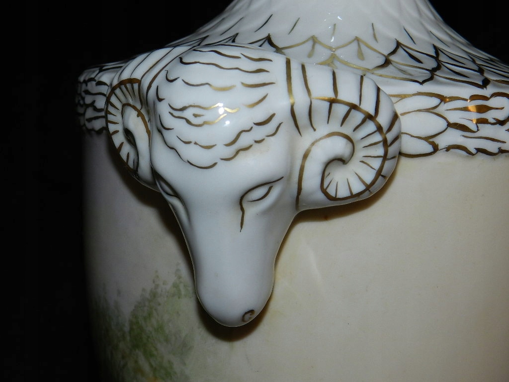 Величественна и необычна ручки в форме овечьей головы и изящная основа с тонким позолотой красиво подчеркивают форму и уникальность представленного экспоната