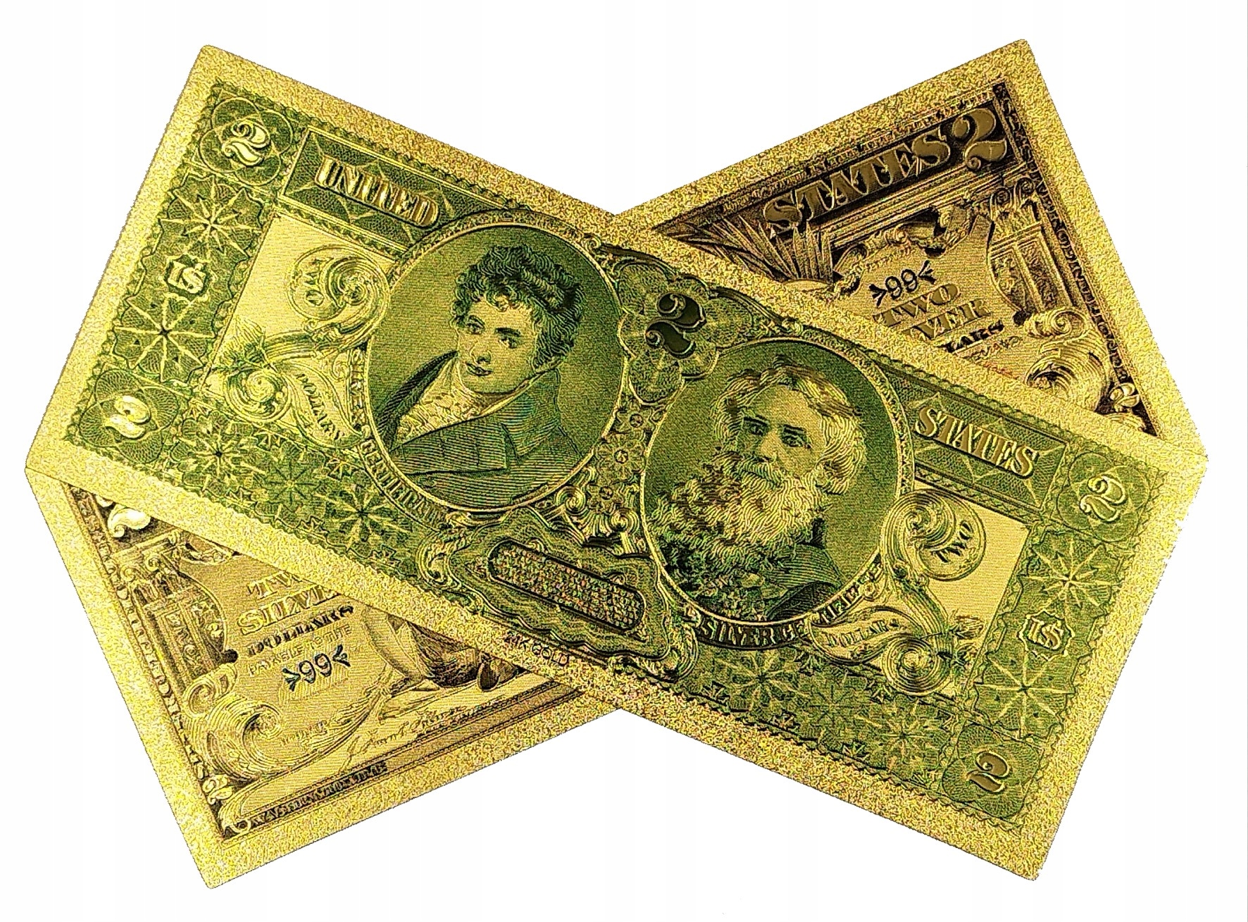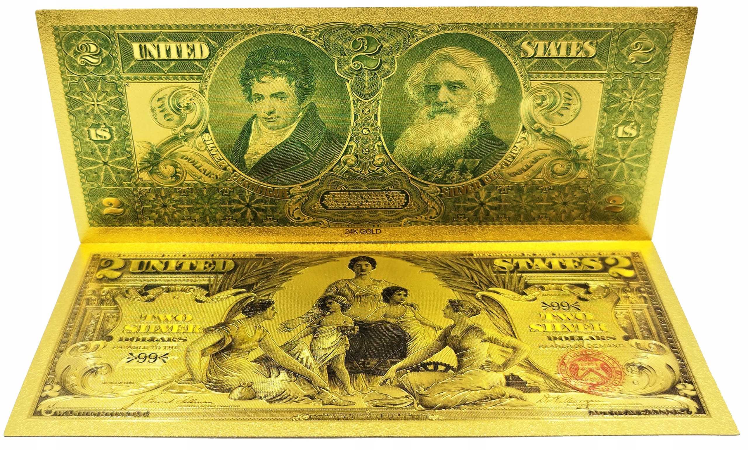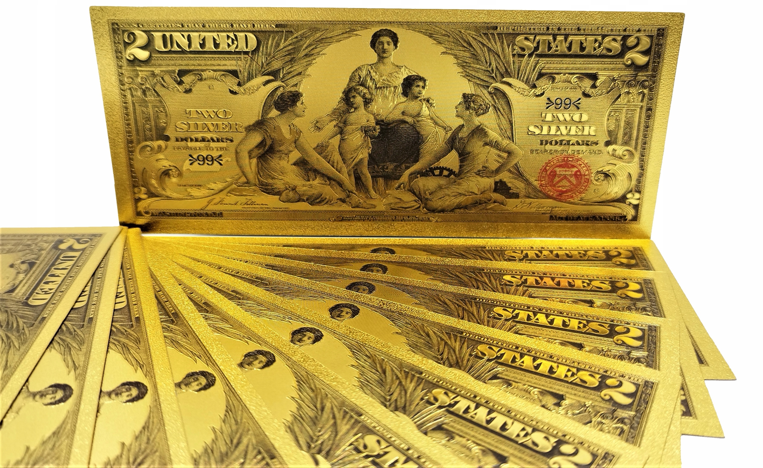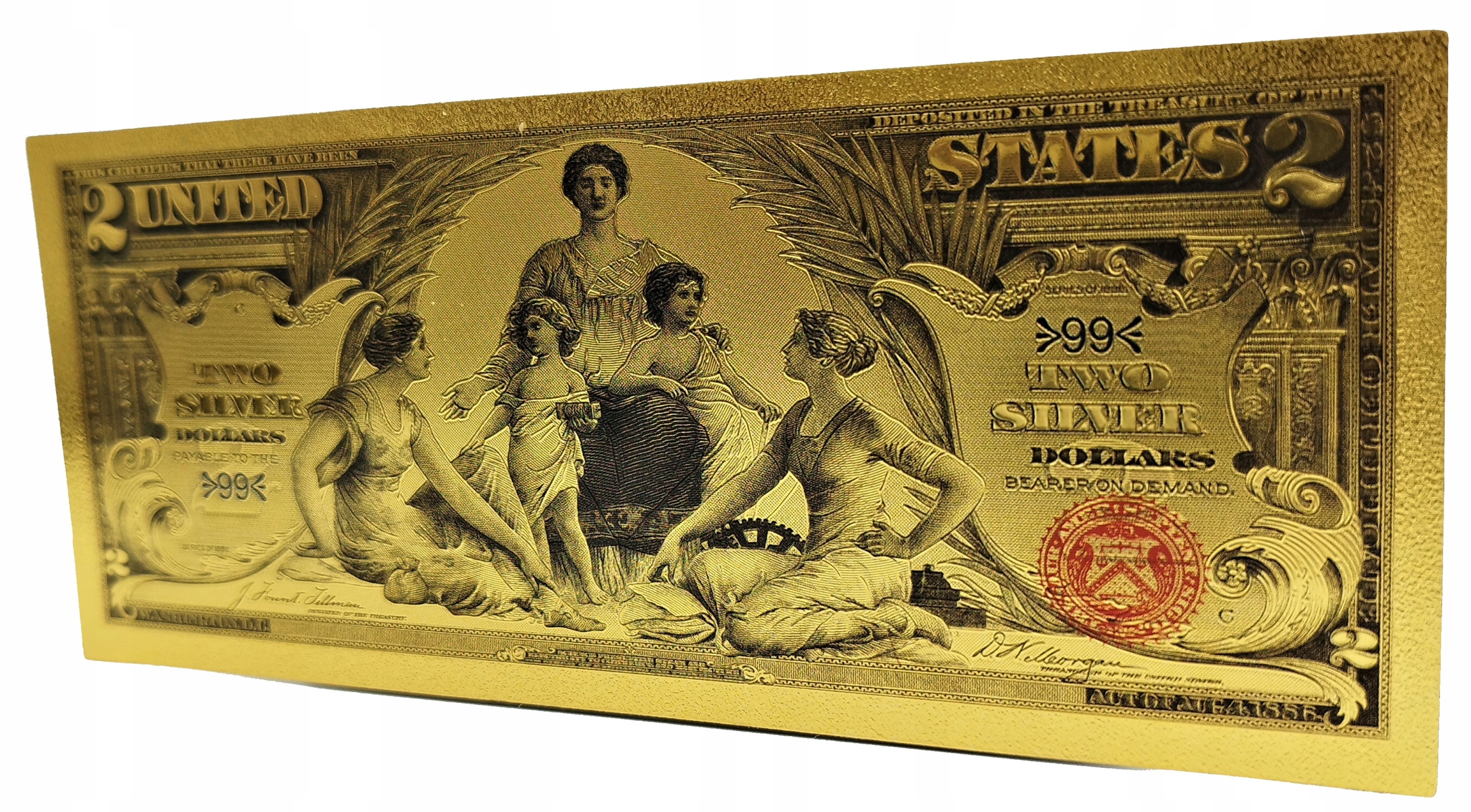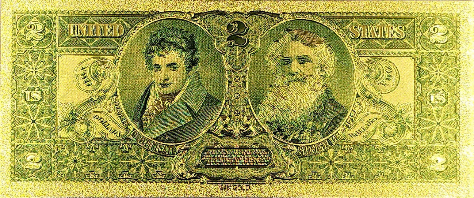 Унікальна позолочена банкнота 2 ДОЛАРИ 1896 року