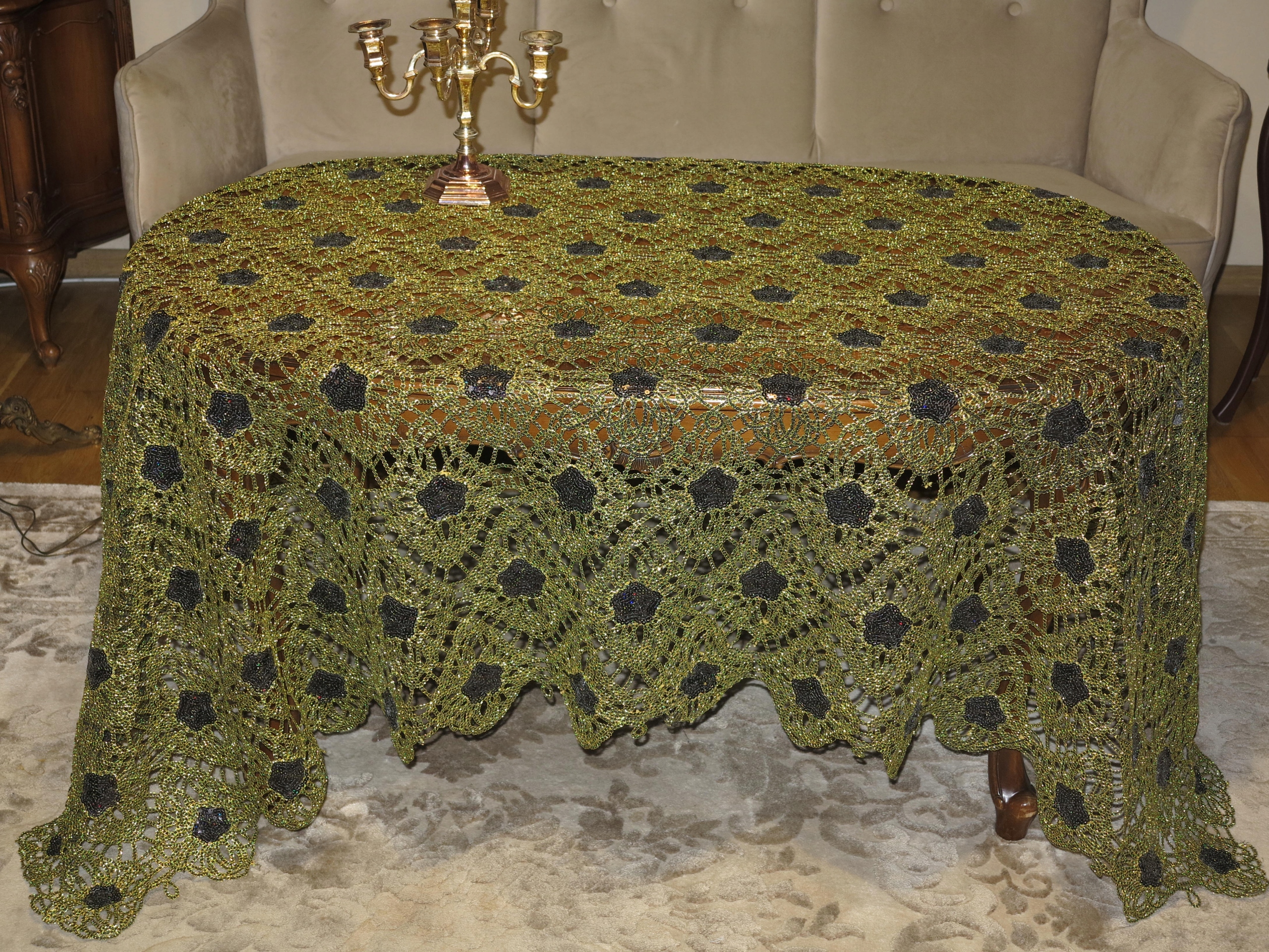 УНІКАЛЬНА СКАТЕРТИНА ЦІЛА З МЕРЕЖИВА З МЕТАЛІЗОВАНОЮ НИТКОЮ СТАРЕ ЗОЛОТО 258/124