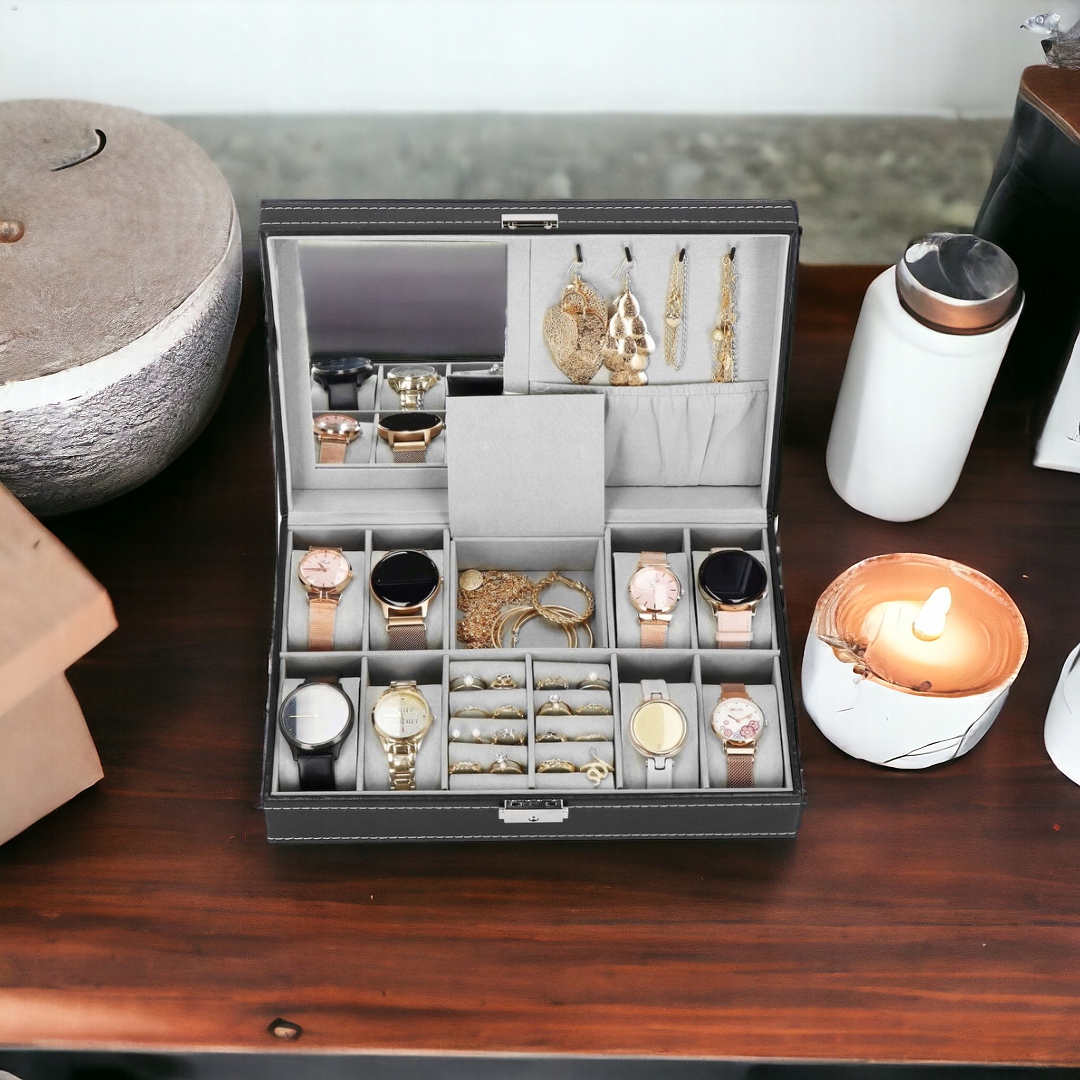 ➡️ Коробка вмещает 8 часов и множество украшений, она очень вместительная . Идеально подходит в качестве домашнего органайзера, а также в качестве демонстрации ювелирных изделий. Элегантное исполнение и внимание к деталям – главные преимущества шкатулки. Он также идеален для путешествий.