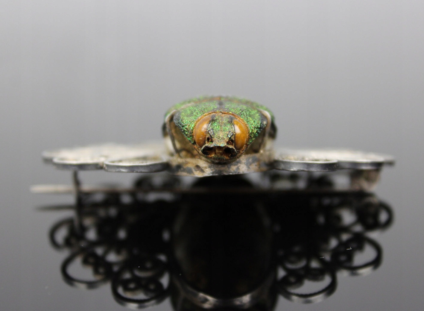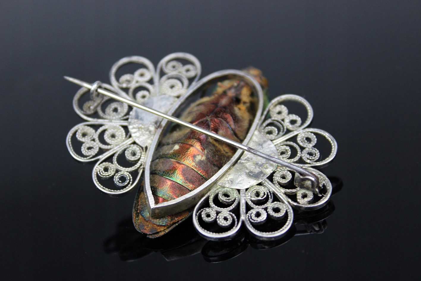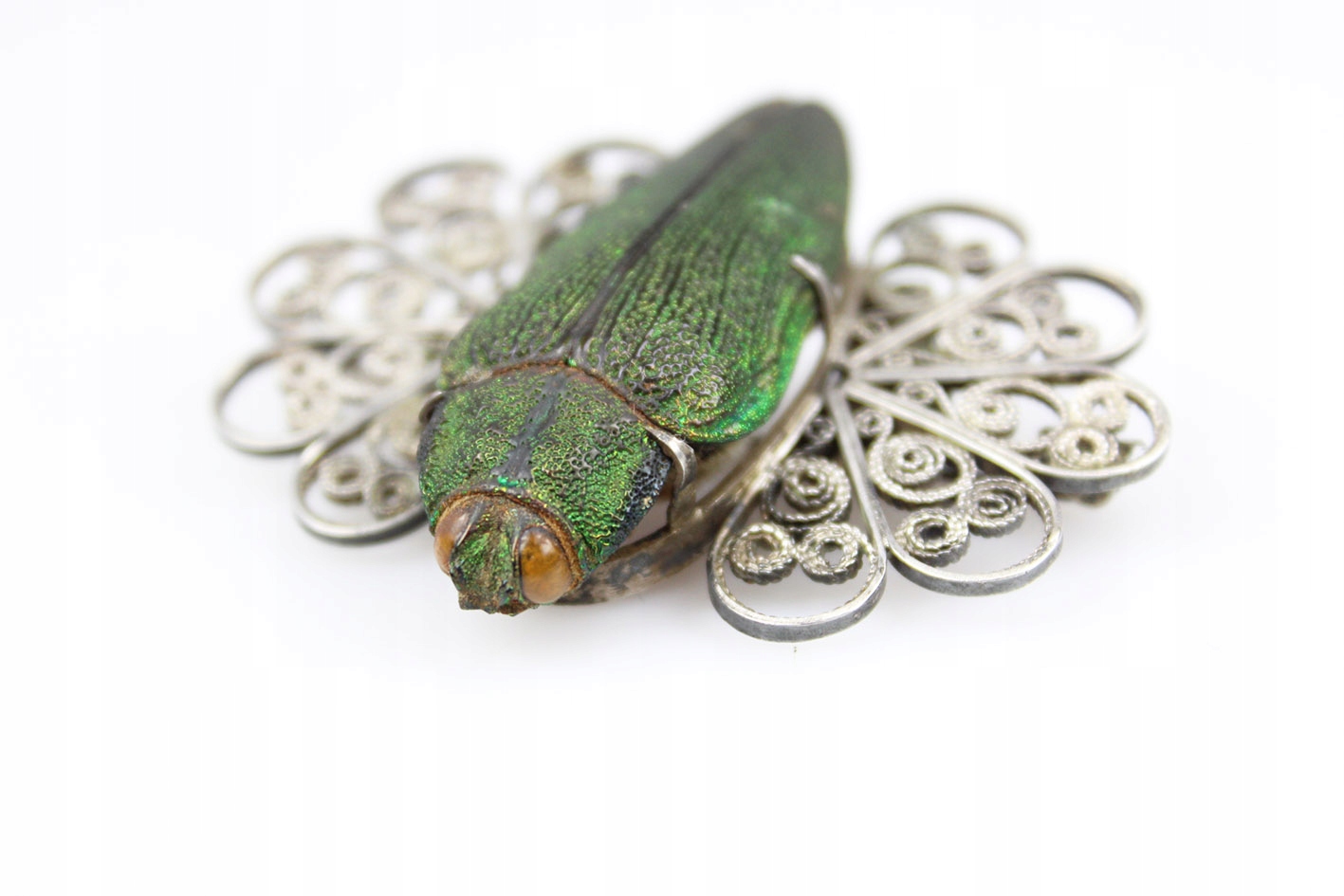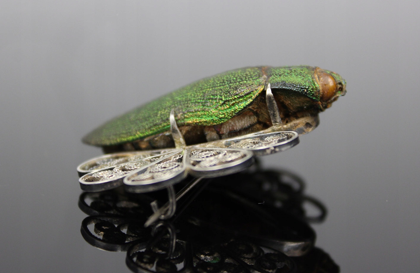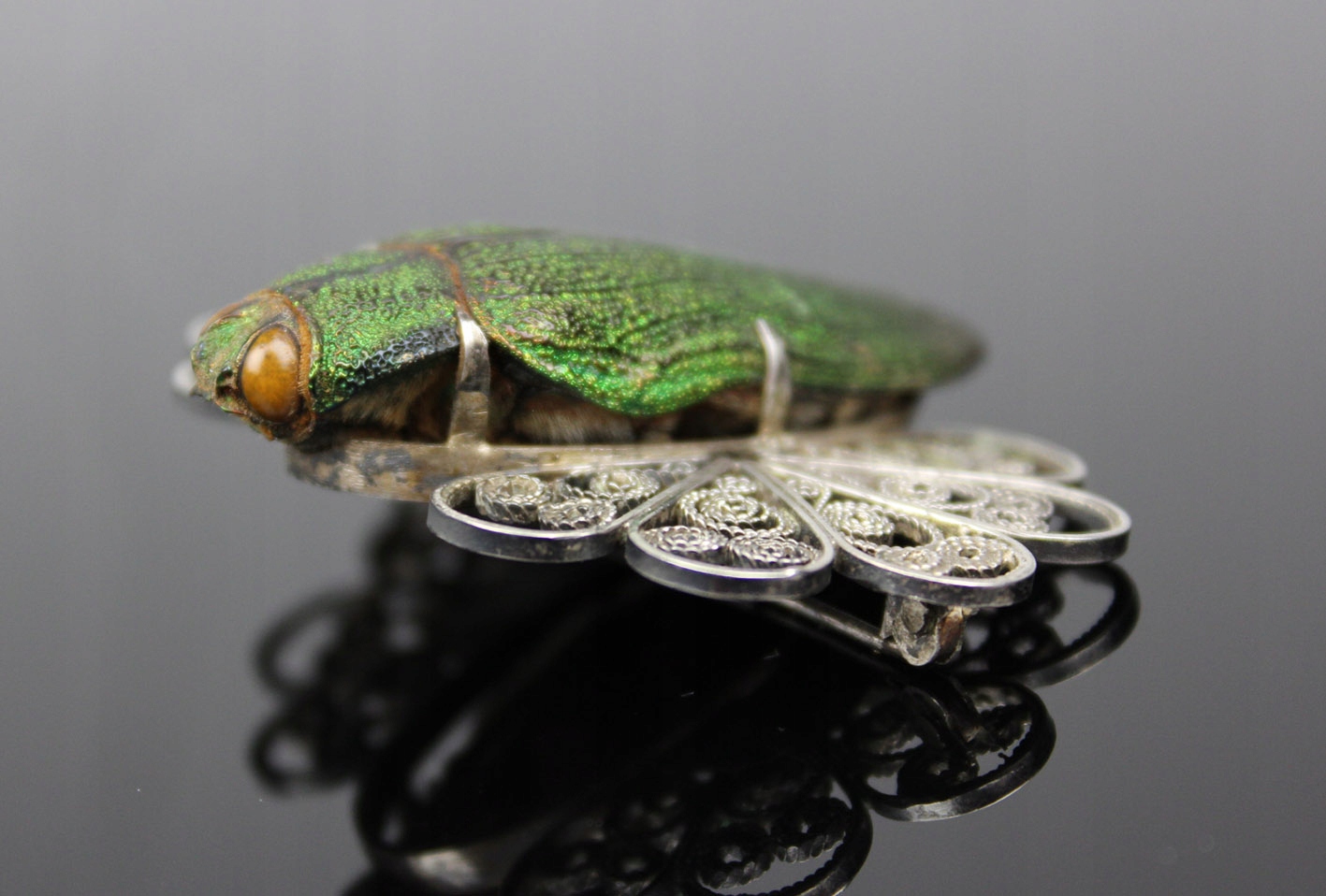 Единственная в своем роде брошь с сушеным жуком из семейства Стераспис, являющаяся уникальным образцом ювелирного искусства в стиле модерн начала 20 века. Это чрезвычайно редкое изделие, возрастом более 100 лет, восхищает своей оригинальностью и необыкновенным сочетанием природы и искусства.