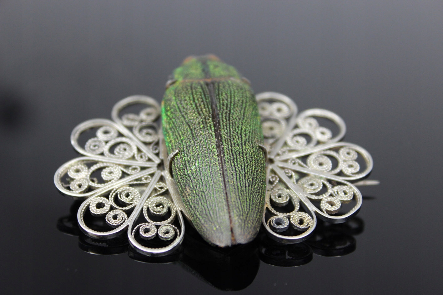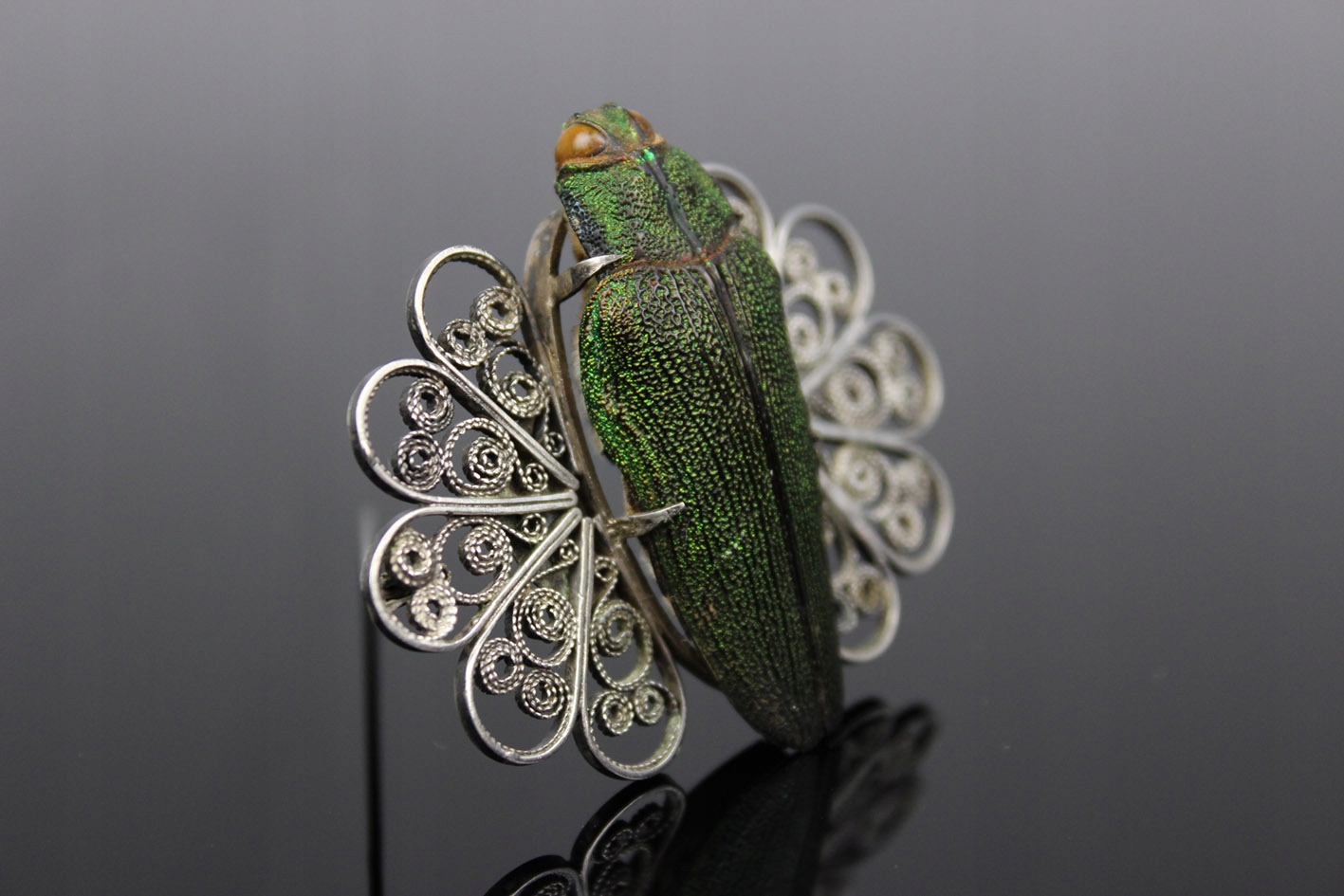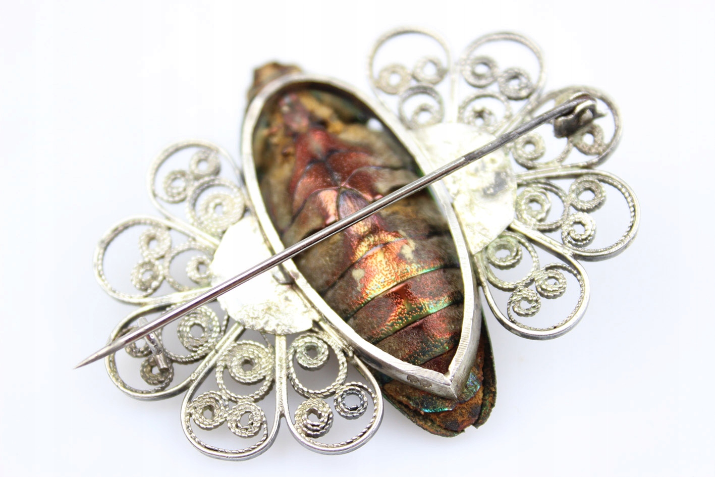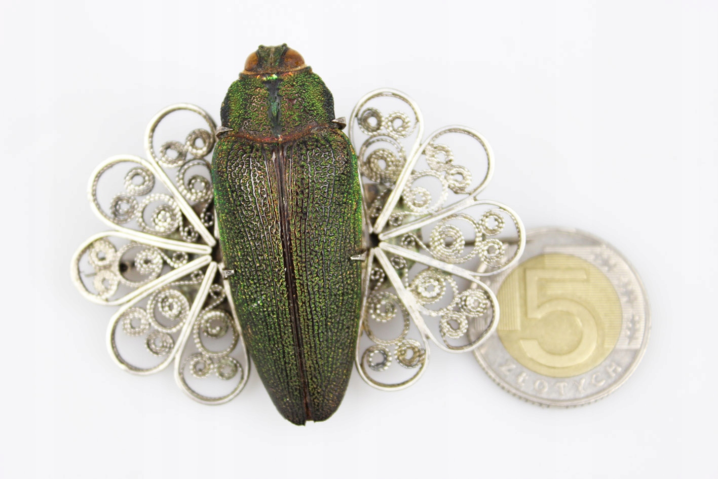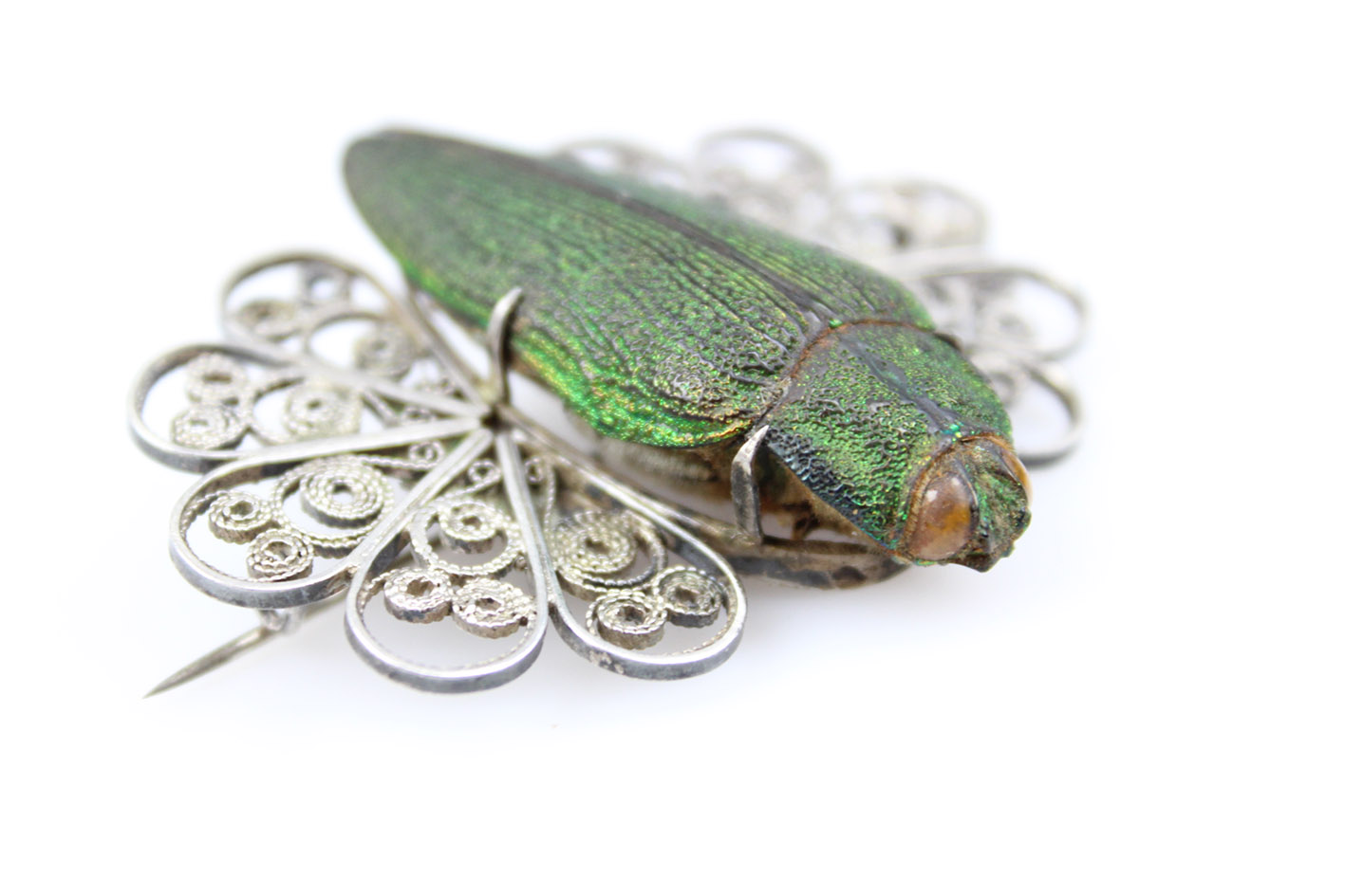 Единственная в своем роде брошь с сушеным жуком из семейства Стераспис, являющаяся уникальным образцом ювелирного искусства в стиле модерн начала 20 века. Это чрезвычайно редкое изделие, возрастом более 100 лет, восхищает своей оригинальностью и необыкновенным сочетанием природы и искусства.