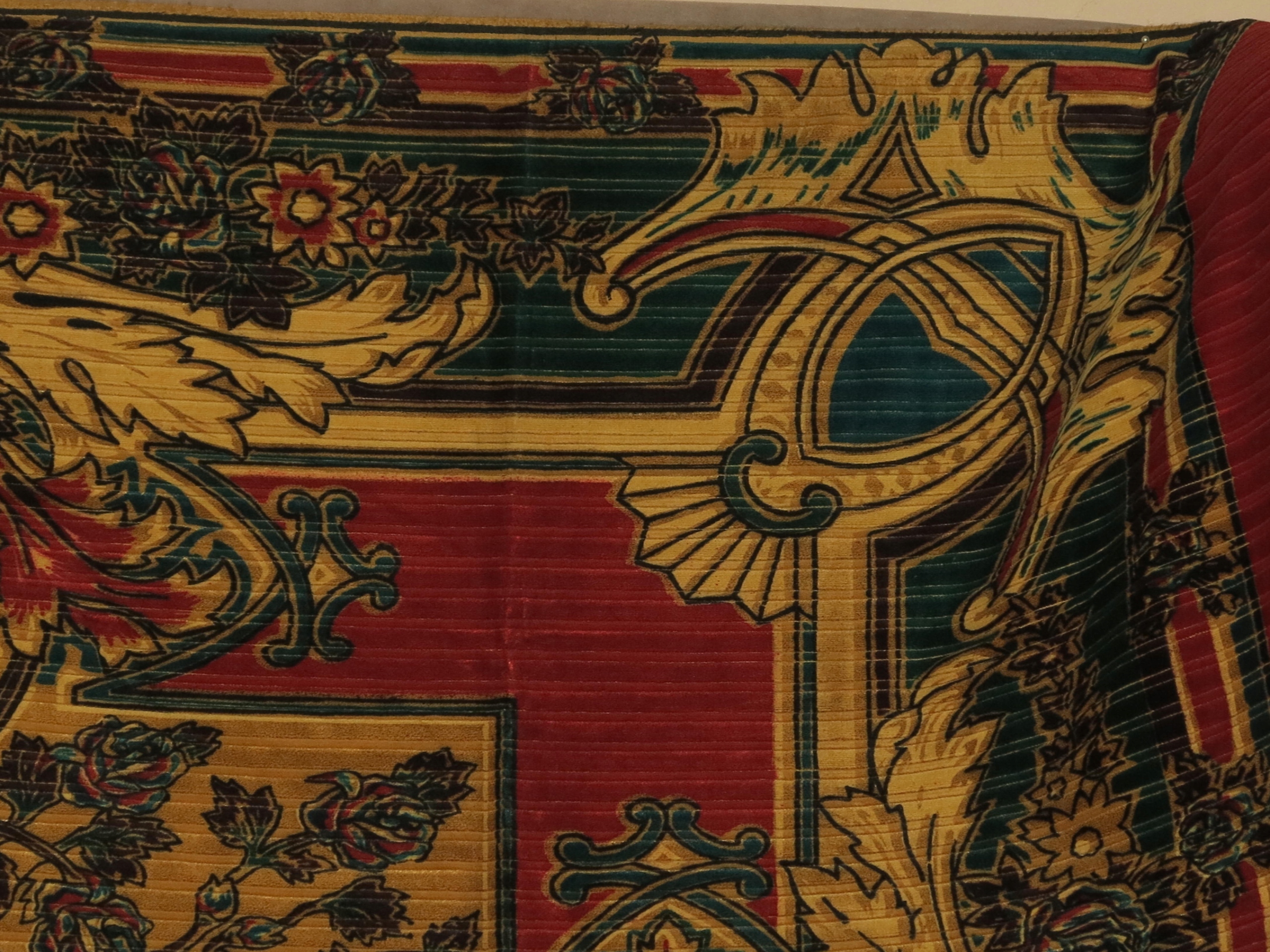 Объект аукциона - древнее, уникальное, искусство, стильный настенный суп из благородного хлопкового бархата, дно с полосами. Он имеет размеры: 205/136 см + полосы. Используется, но в супер хорошем состоянии и качеством, несмотря на годы. Это будет служить много лет. Я рекомендую- для настоящего знатока.