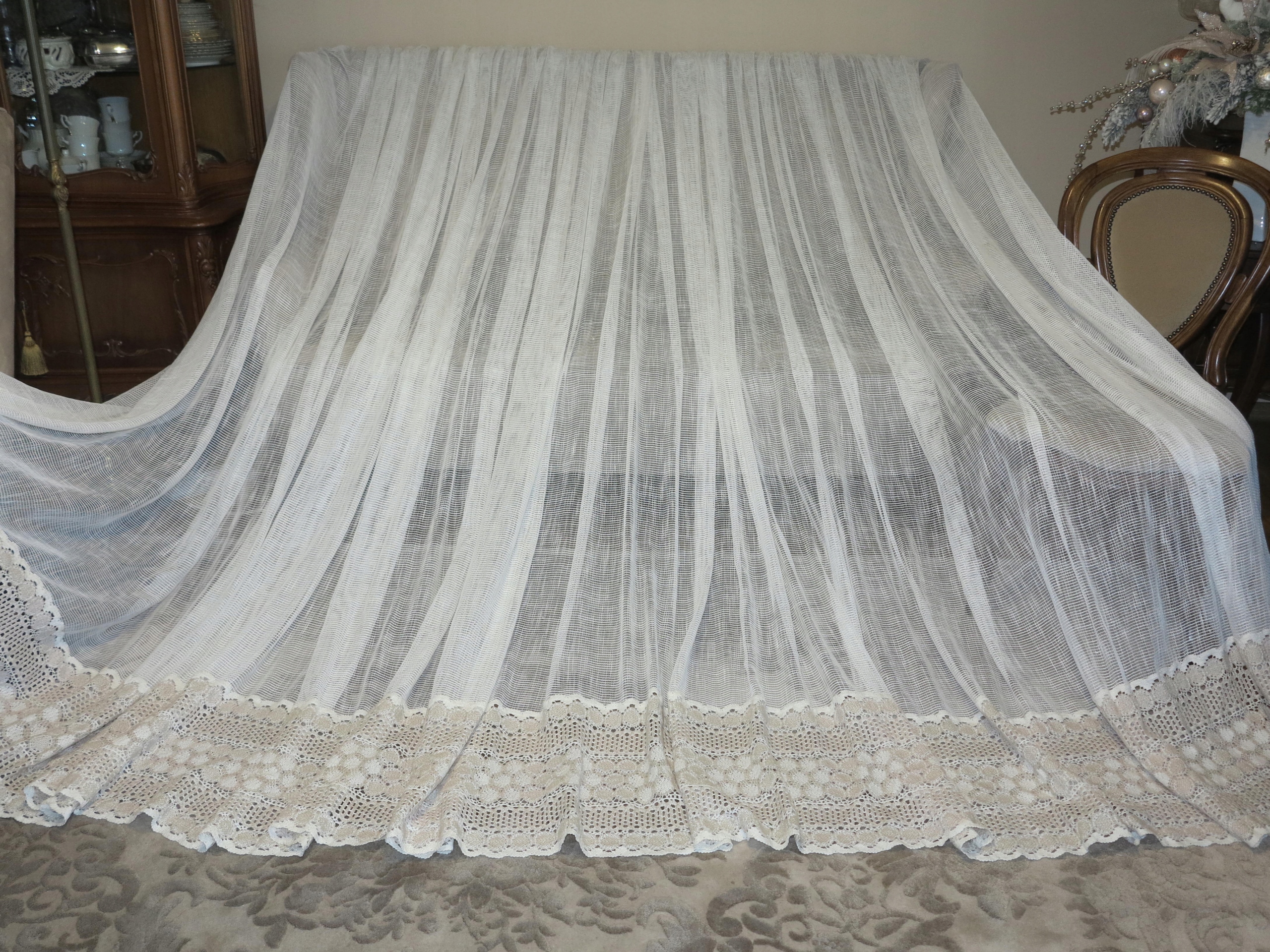 УНИКАЛЬНАЯ ОГРОМНАЯ СЕТОЧНАЯ ШТОРА, ШИРОКАЯ И ТОЛСТАЯ ВНИЗУ С ЦВЕТНЫМ КРУЖЕВОМ. 671/248