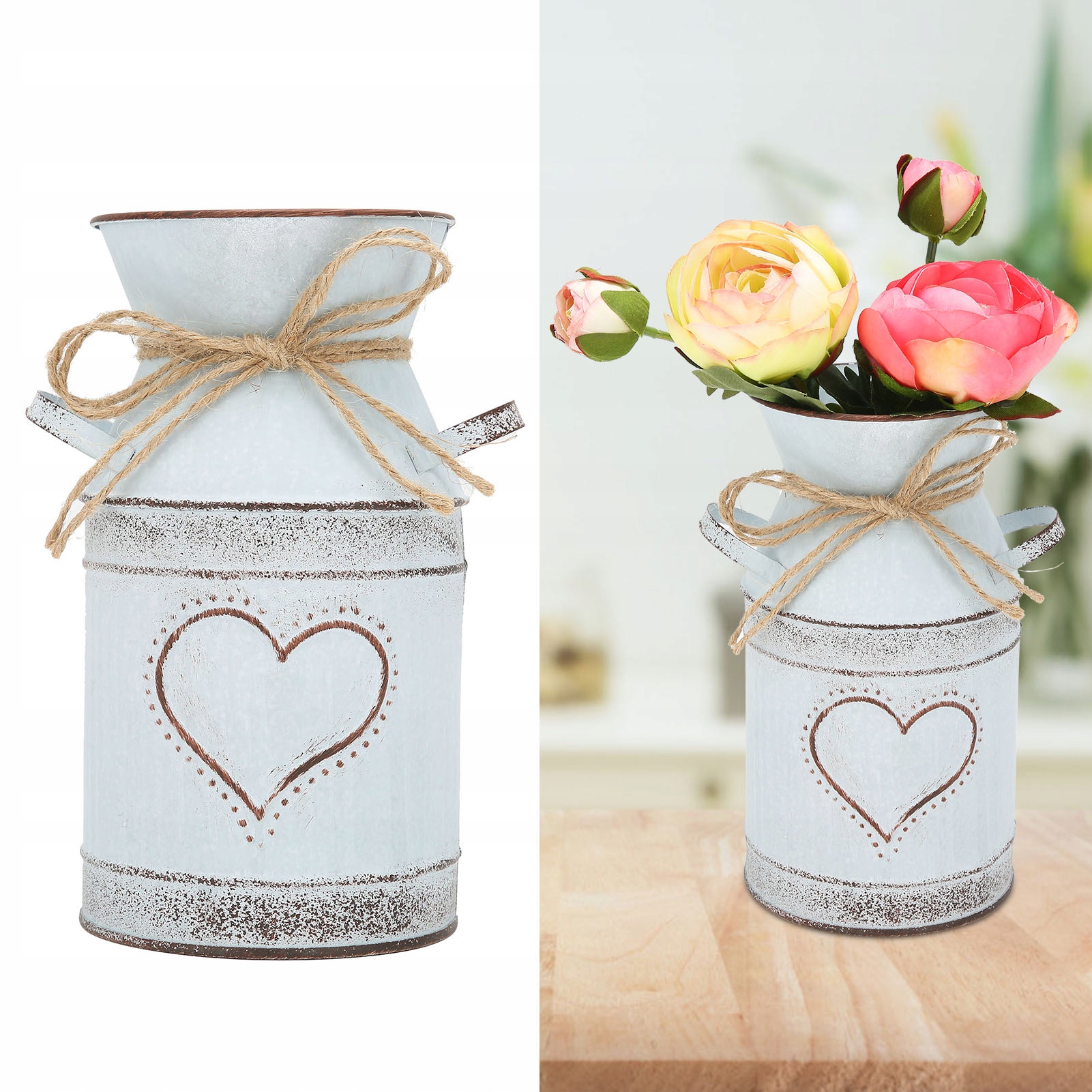 1: Садовая цветочная композиция из оцинкованной железной вазы, удобная на ощупь и красивый внешний вид, используется в качестве украшения дома.