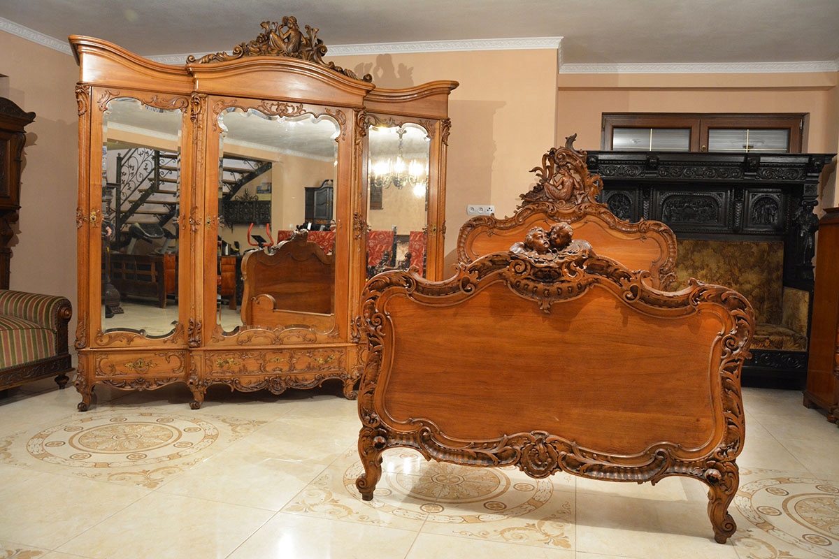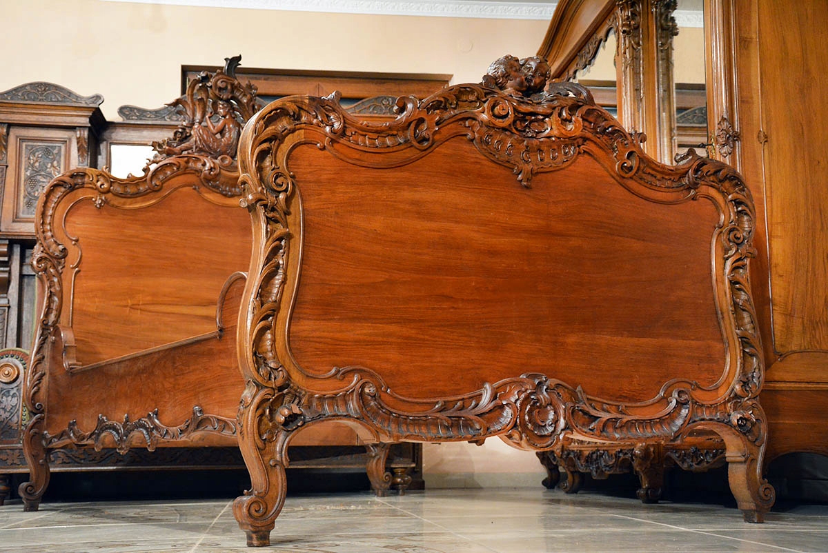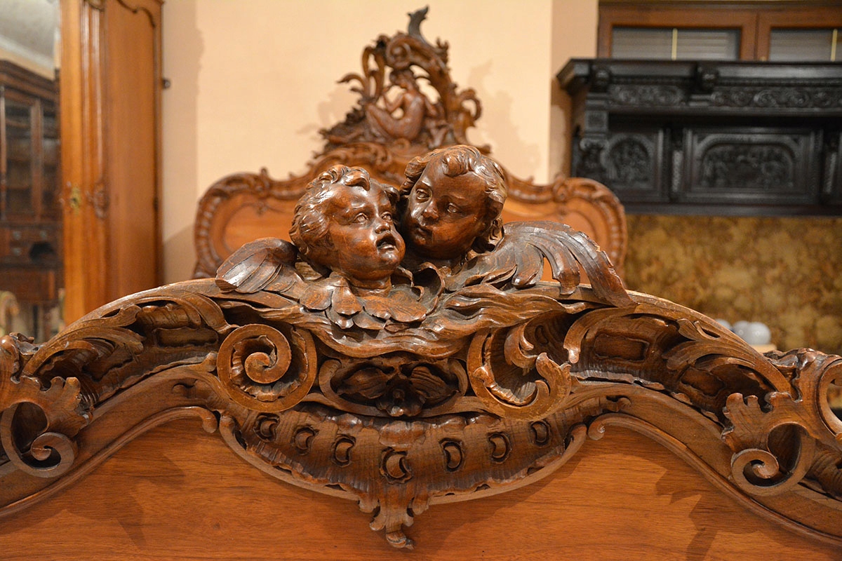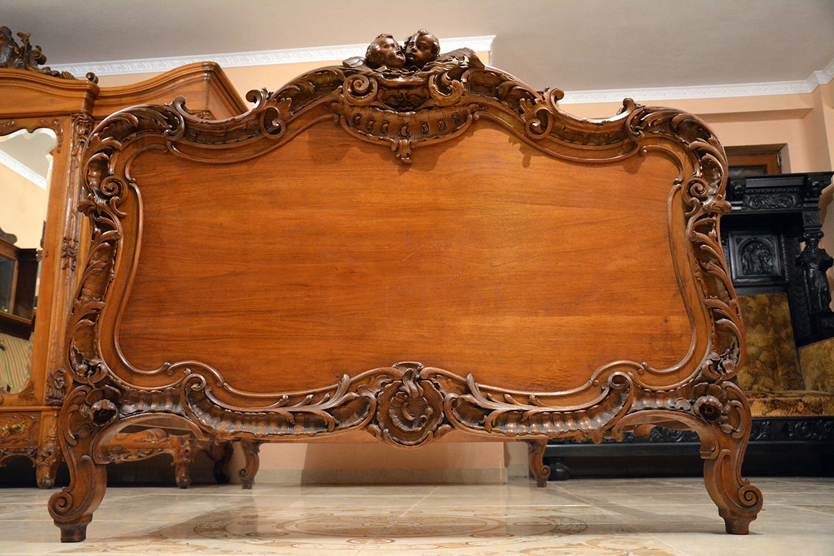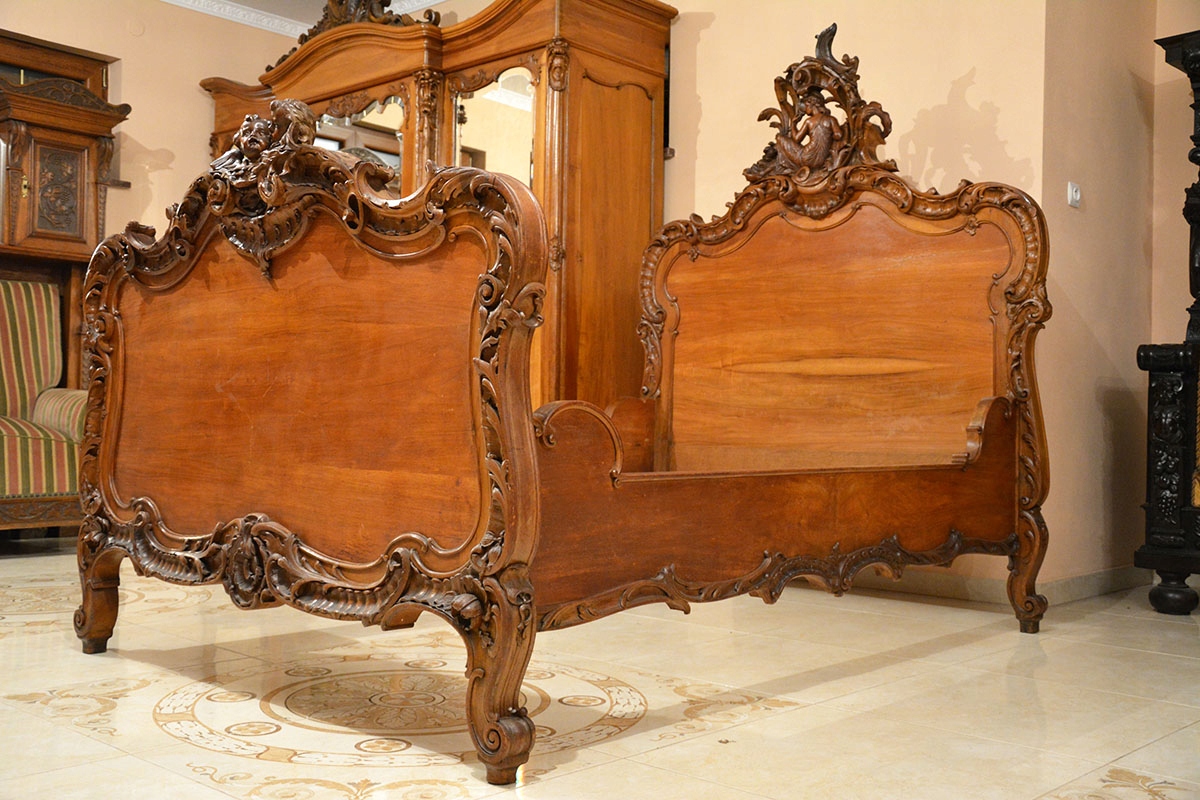 Уникальная кровать в стиле неорококо конца XIX века из орехового дерева.