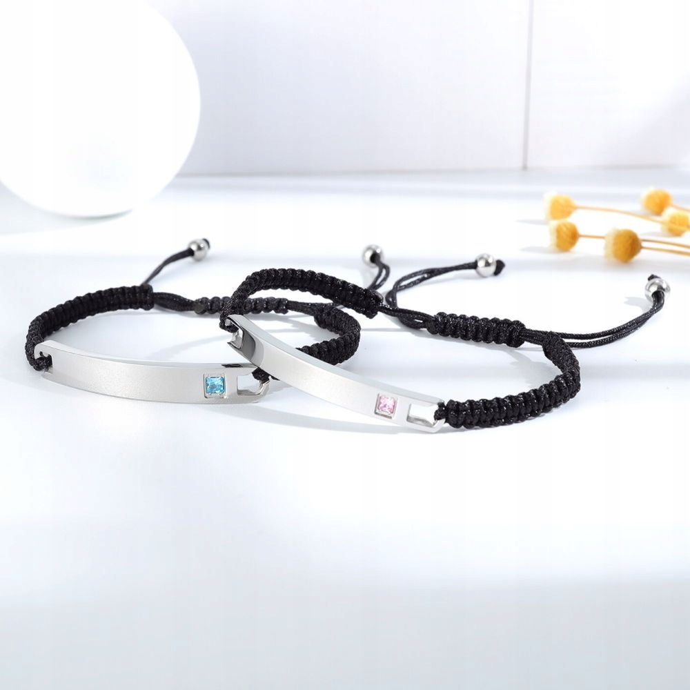 ⭐️ Каждый браслет украшен элегантным камнем - блестящим синим горным хрусталем (мужские) и розовым (женские). b>