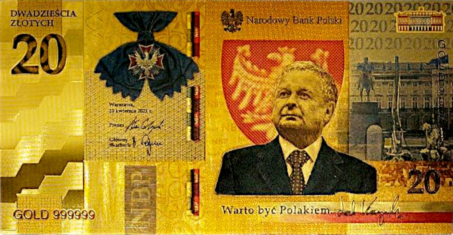 Уникальная коллекционная банкнота из прочного ПВХ-материала, посвященная одной из самых важных фигур в современной истории Польши - президенту Леху Качиньскому.