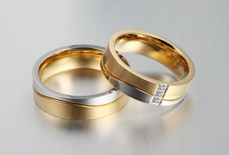 УНИКАЛЬНЫЕ ОБРУЧАЛЬНЫЕ КОЛЬЦА ЗОЛОТАЯ СТАЛЬ 316L ПАРА